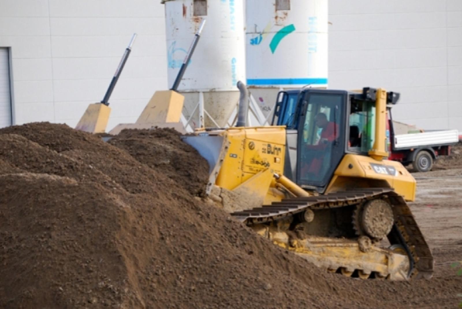 Schweres Gerät wird derzeit bei der Weidenhammer Packaging Group im Gewerbegebiet Bunde-West benötigt. Der Bau der neuen Produktionshalle läuft auf Hochtouren.