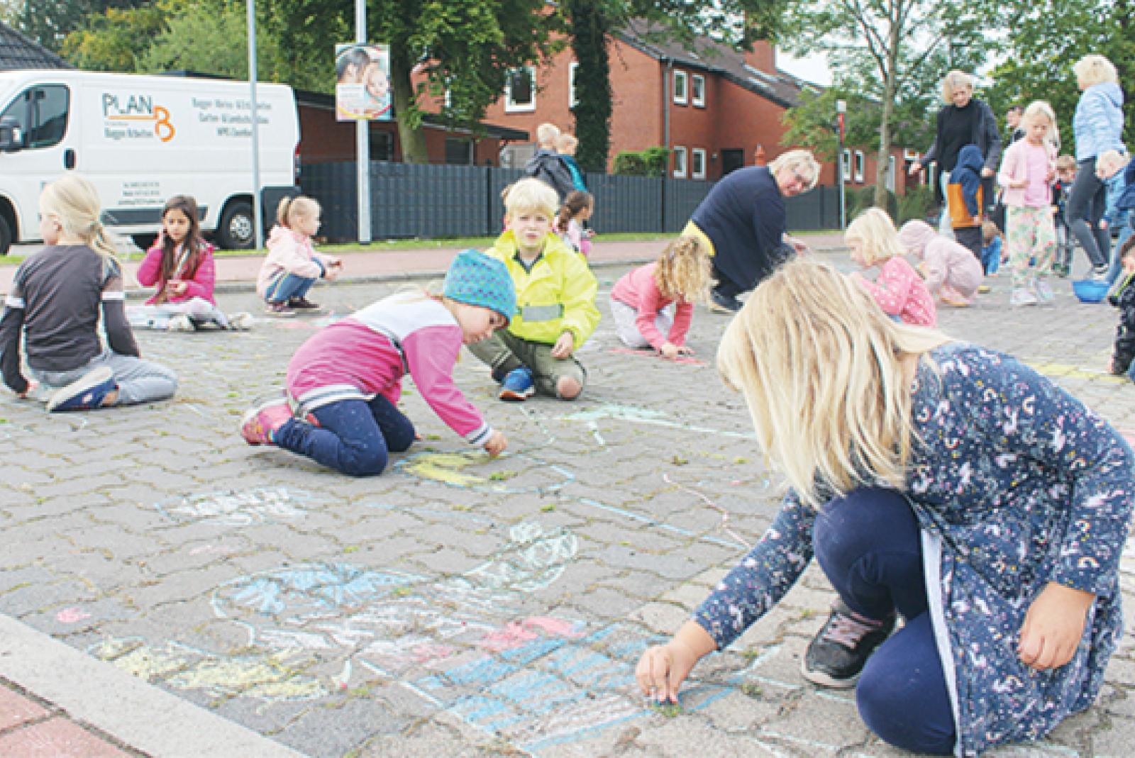 Das Team der Kindertagesstätte in der Lindenstraße in Bunde hatte sich zum diesjährigen Weltkindertag am Montag etwas einfallen lassen: Mit bunten Kreidezeichnungen »eroberten« die Kinder die Straßen rund um den Kindergarten.