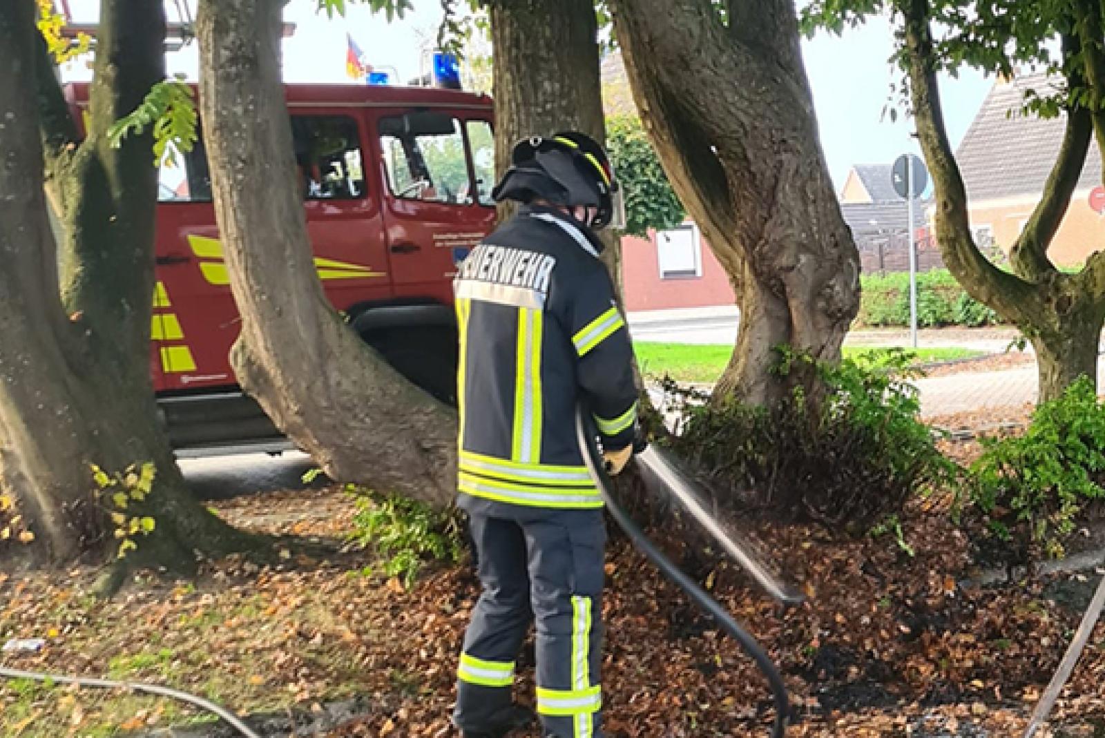 Im Bereich der Schlittschuhbahn im Wüpping in Bunde wurde der Regionallenleitstelle Ostfriesland am Sonntagabend ein Feuer gemeldet. Aus noch ungeklärter Ursache sind Sträucher und Laub in Brand geraten. Kurze Zeit später rückte das Tanklöschfahrzeug der Feuerwehr Bunde zur Einsatzstelle aus, welche die Situtation mit dem Schnellangriff rasch unter Kontrolle hatte.