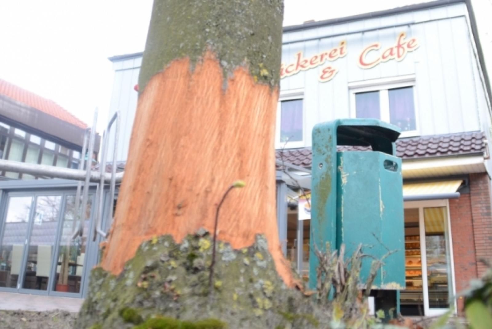Unbekannte Täter haben die Rinde einer Linde, die vor der Bäckerei Warsing in Bunde steht,  in einer Höhe von 30 Zentimetern abgeschabt. »So etwas habe ich noch nie gesehen«, zeigt sich Bauamtsleiter Manfred de Buhr fassungslos.