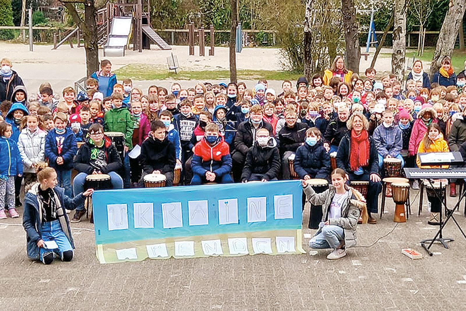 Ein Zeichen für den Frieden in der Ukraine haben die Klasse 6b der Oberschule Bunde sowie die Bunder Grundschüler am Dienstag gesetzt. Nachdem die Grundschüler in der ersten großen Pause mit einer großen Trommelimprovisation auf ...