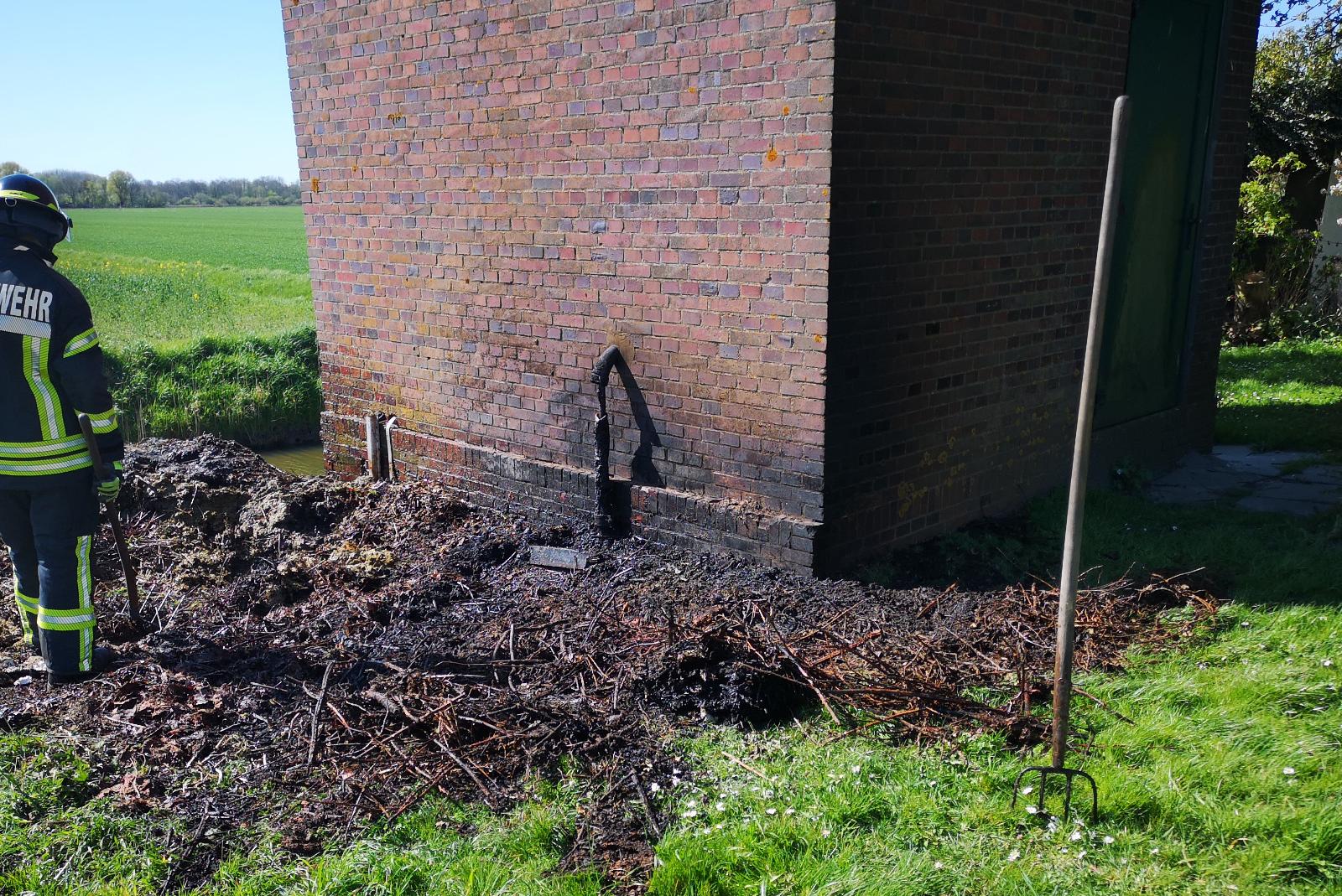 Am Schöpfwerk in Charlottenpolder brannte heute Vormittag gegen 11.20 Uhr ein Haufen mit Unrat direkt am Gebäude. Die alarmierte Feuerwehr aus Bunde rückte wenige Minuten später mit dem Tanklöschfahrzeug aus. Mit dem Schnellangriff konnte das Feuer schnell unter Kontrolle gebracht werden, heißt es in einer Pressemitteilung. Neben der Feuerwehr waren die Polizei und der Energieversorger EWE ebenfalls zur Einsatzstelle gerufen worden.