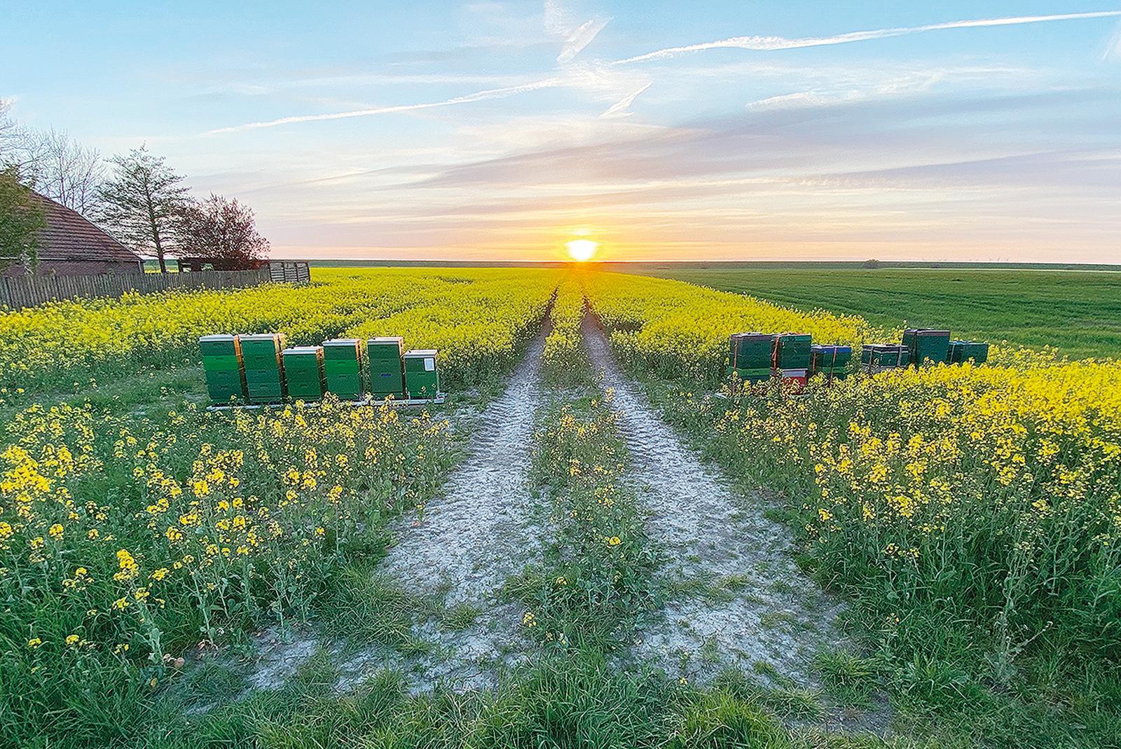 Blühende Rapsfelder und sinkende Sonne im Rheiderland