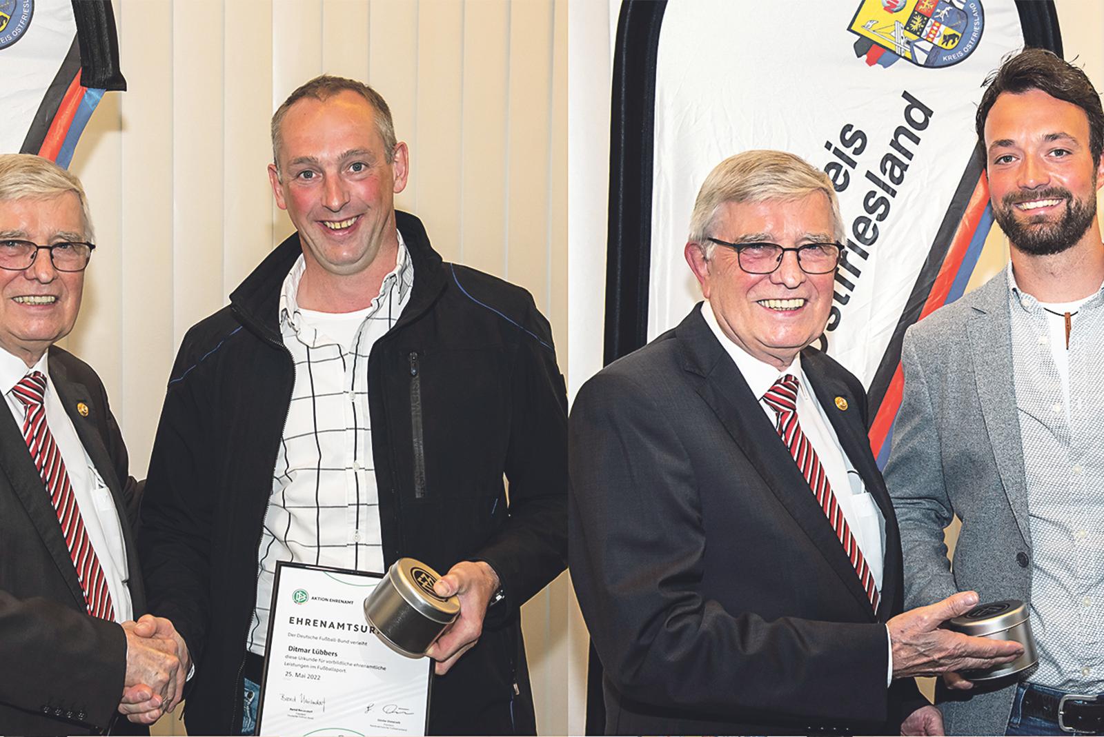 Der NFV-Kreis Ostfriesland hat Ende Mai 21 Ehrenamtliche aus dem ostfriesischen Fußball geehrt, da-?runter mit Ditmar Lübbers, Uwe Sanders und Matthias Groenewold vom TV Bunde sowie Martin Hut, der aus Stapelmoorerheide kommt und die C1 des JFV Leer ...