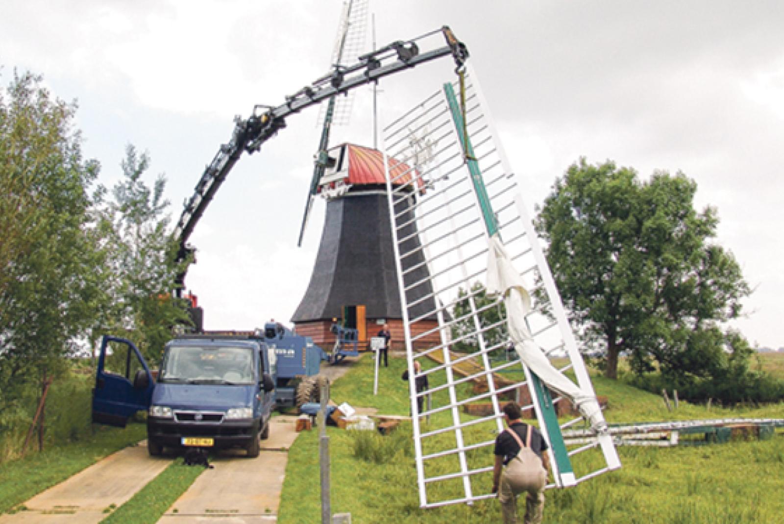Die Reparaturarbeiten nach den schweren Sturmschäden im vergangenen Jahr an der Wynhamster Mühle in Ditzumerverlaat sind angelaufen.