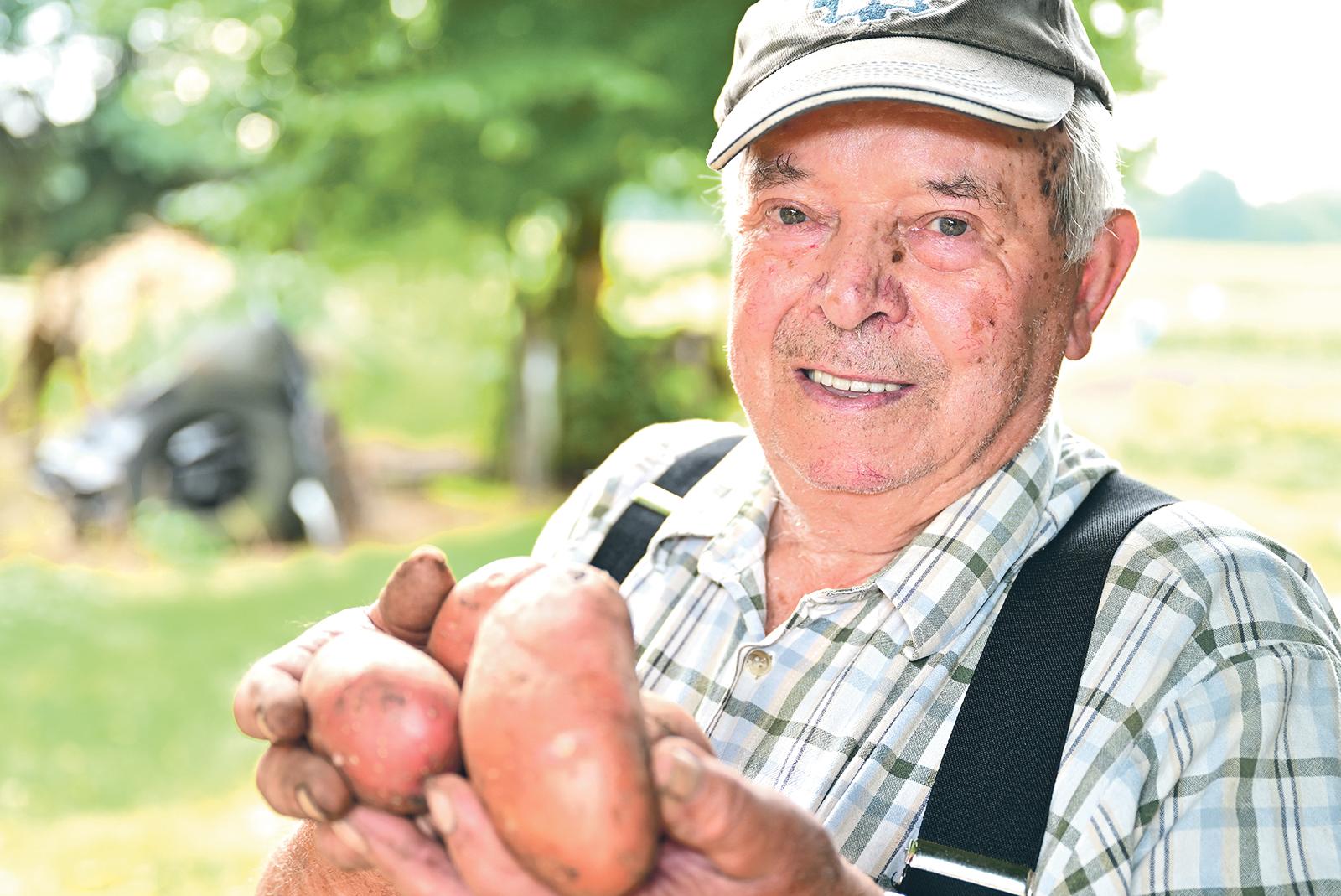 Früher als erwartet hat Otto Siemens aus Wymeer seine Kartoffeln geerntet. »Watt moie Tuffels!« Der 82-Jährige ist quasi Eigenversorger und hat jetzt für die Familie rund 20 Zentner »gerüdet«, ...