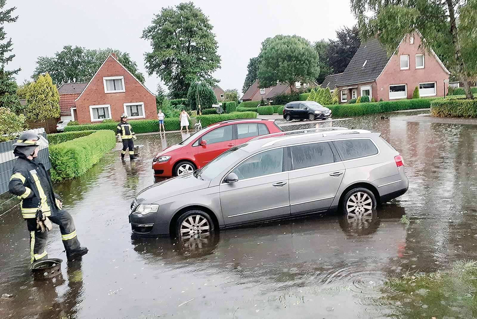 Starkregen setzt Siedlung in Bunde unter Wasser - Familie gefrustet von den Überschwemmungen