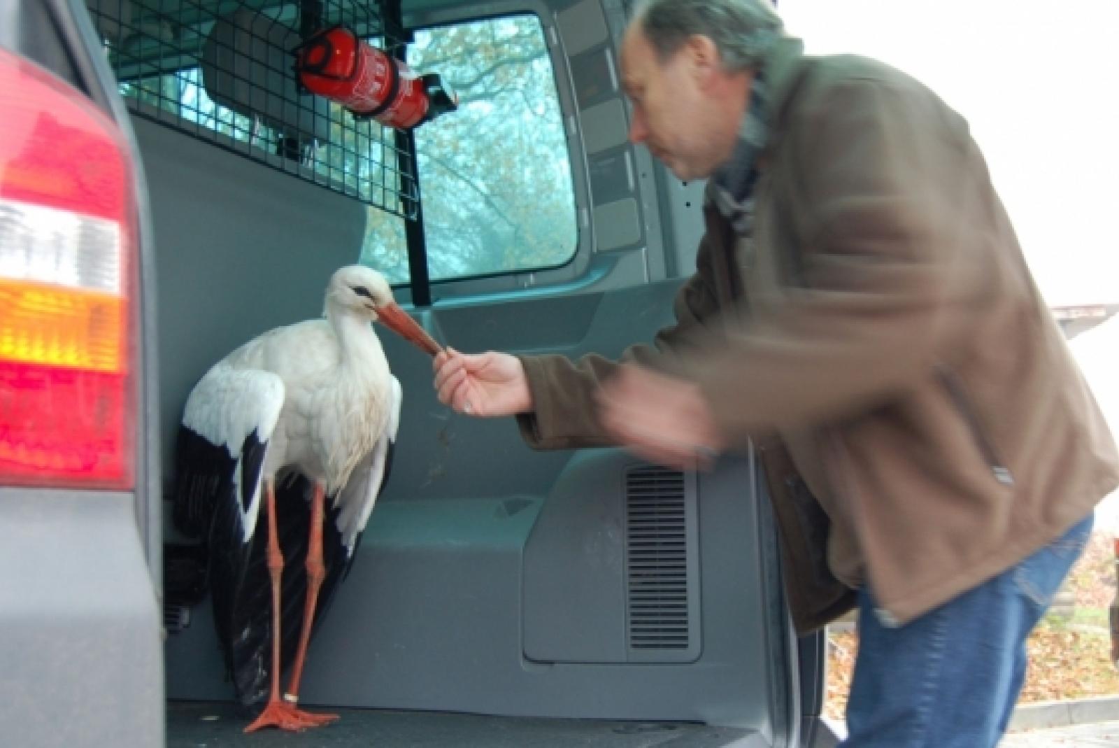 Startschwierigkeiten: Storch in Bunde von Mercedes erfasst