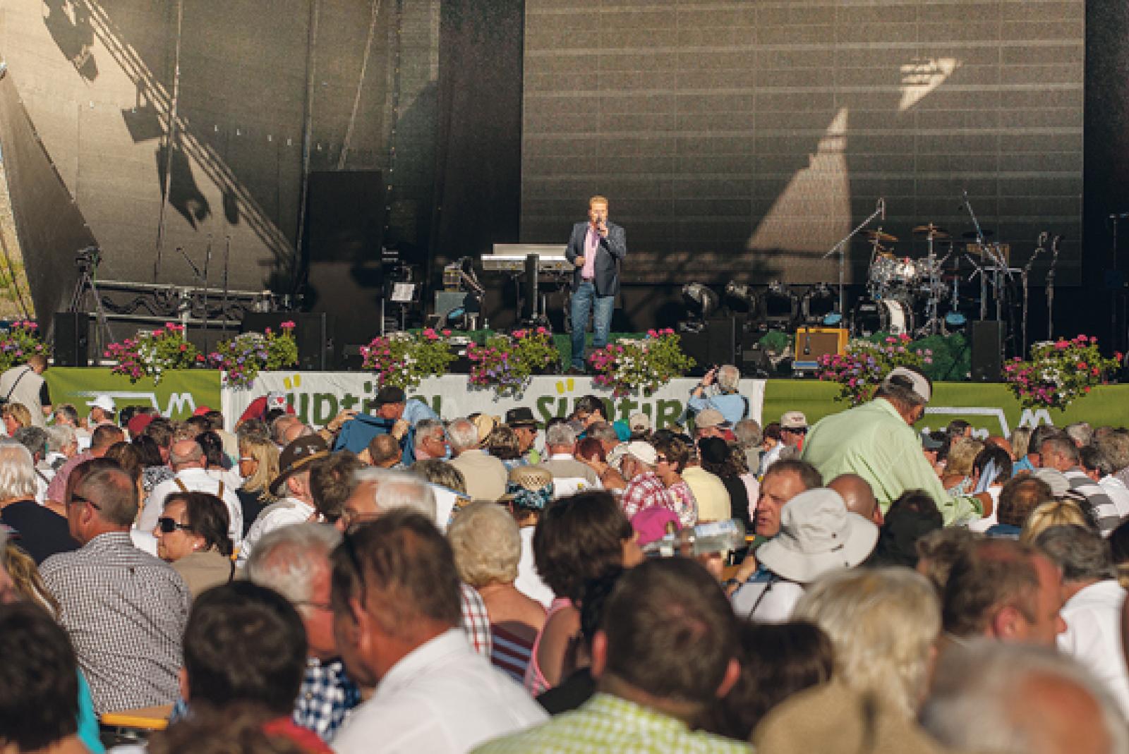 Das Kastelruther Spatzen-Open Air ist ein Gipfeltreffen der Volksmusik: Alljährlich schwappt eine Welle des Frohsinns durch den malerischen Ort Seis in Südtirol, 6000 begeisterte Fans feiern auch in diesem Jahr den Auftritt ihrer »Helden« - diesmal mittdendrin im Trubel: ...