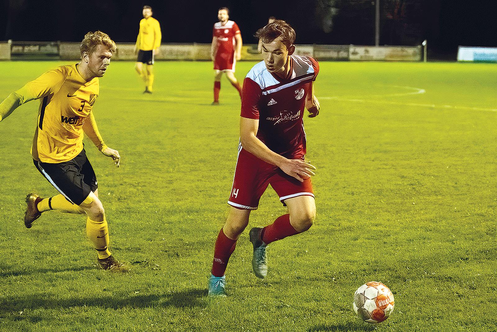Der SV Ems Jemgum (im Bild Simon Wurps) zeigte gegen den TuS Weene eine gute Defensivleistung. Im Sturm waren die Jemgumer jedoch zu harmlos. © Foto: Zuidema