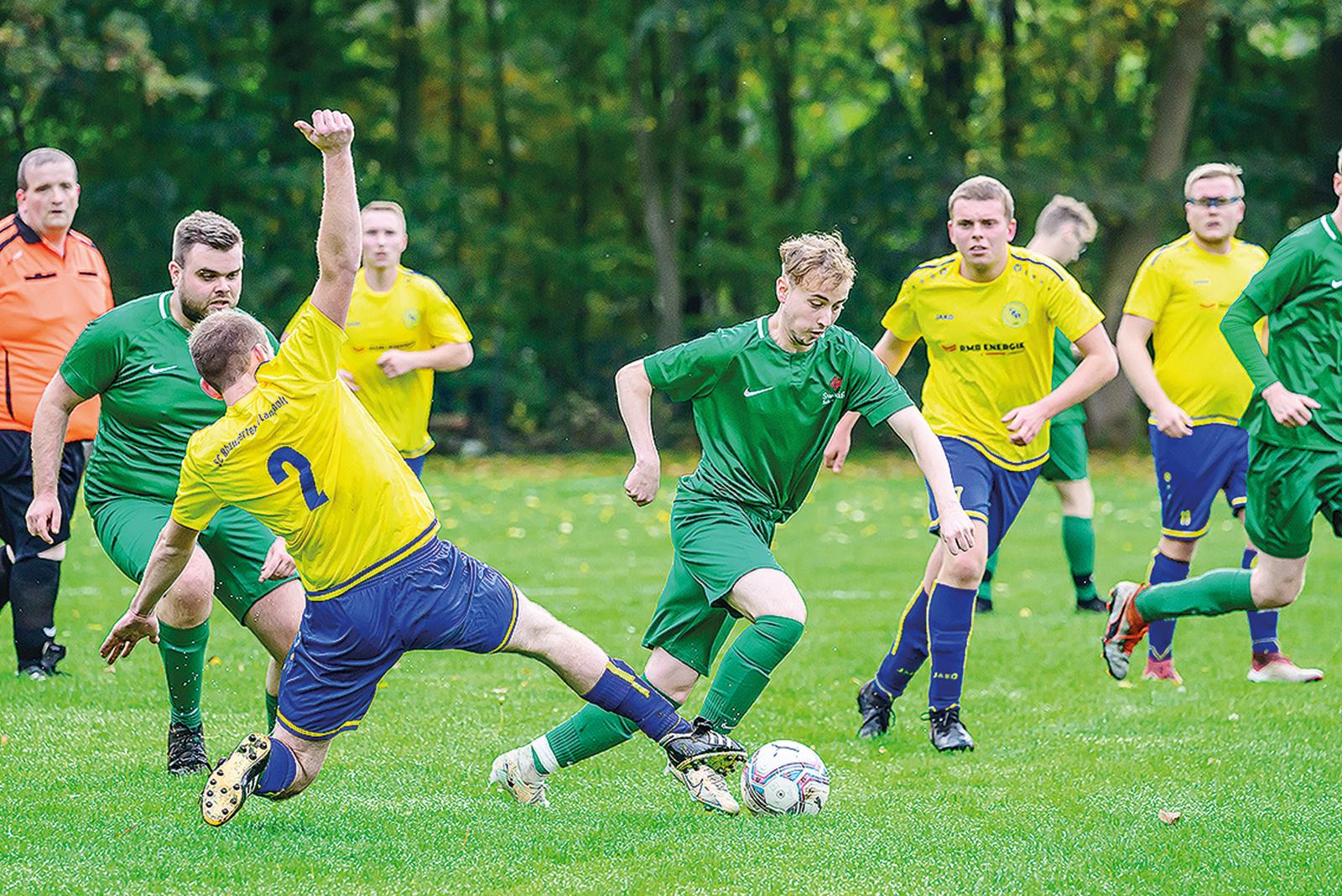 Die Gäste aus Rhauderfehn/Langholt langten am Sonntag in Stapelmoor gegen die Teutonia-Reserve laut Stapelmoor-Coach Daniel Donker durchaus auch mal unfair zu. © Fotos: Bruins