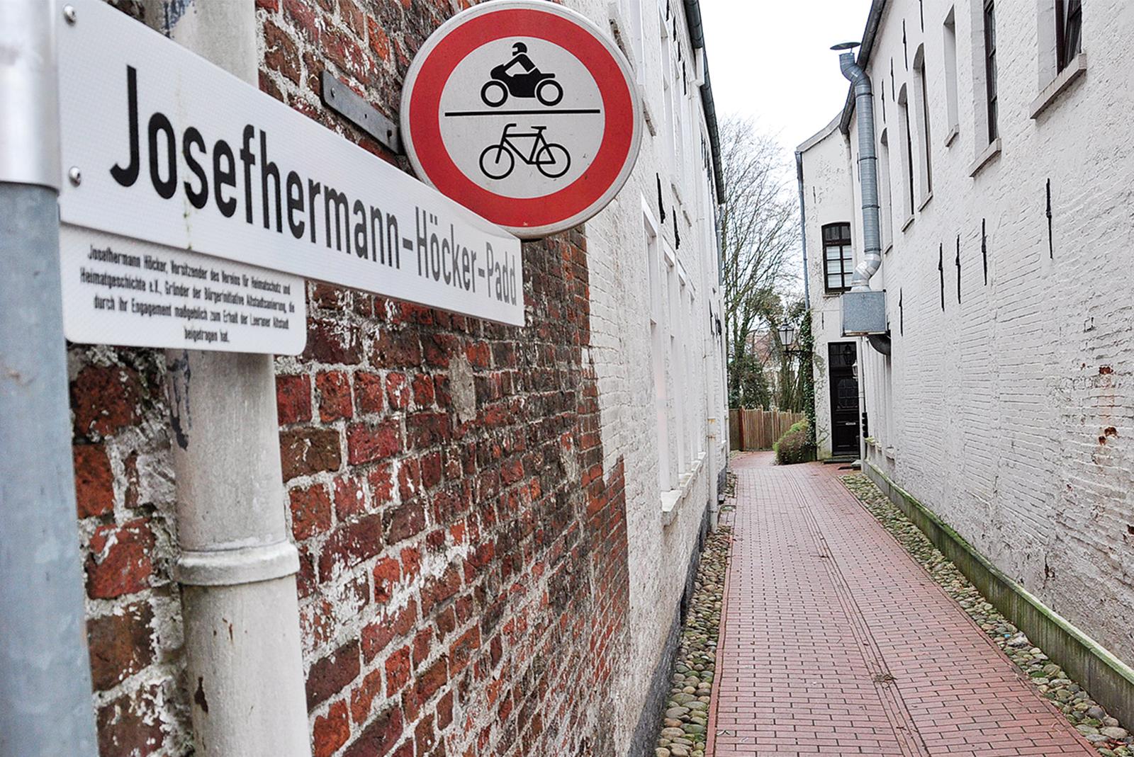 Der Weg in der Leeraner Altstadt, der die Rathausstraße mit der Uferpromenade verbindet, heißt jetzt »Josefhermann-Höcker-Padd«. Die Straßenschilder und eine Infotafel erinnern an den 1902 geborenen und 1977 verstorbenen Kaufmann, der lange Jahre Vorsitzender des Heimatvereins Leer und 1973 ...