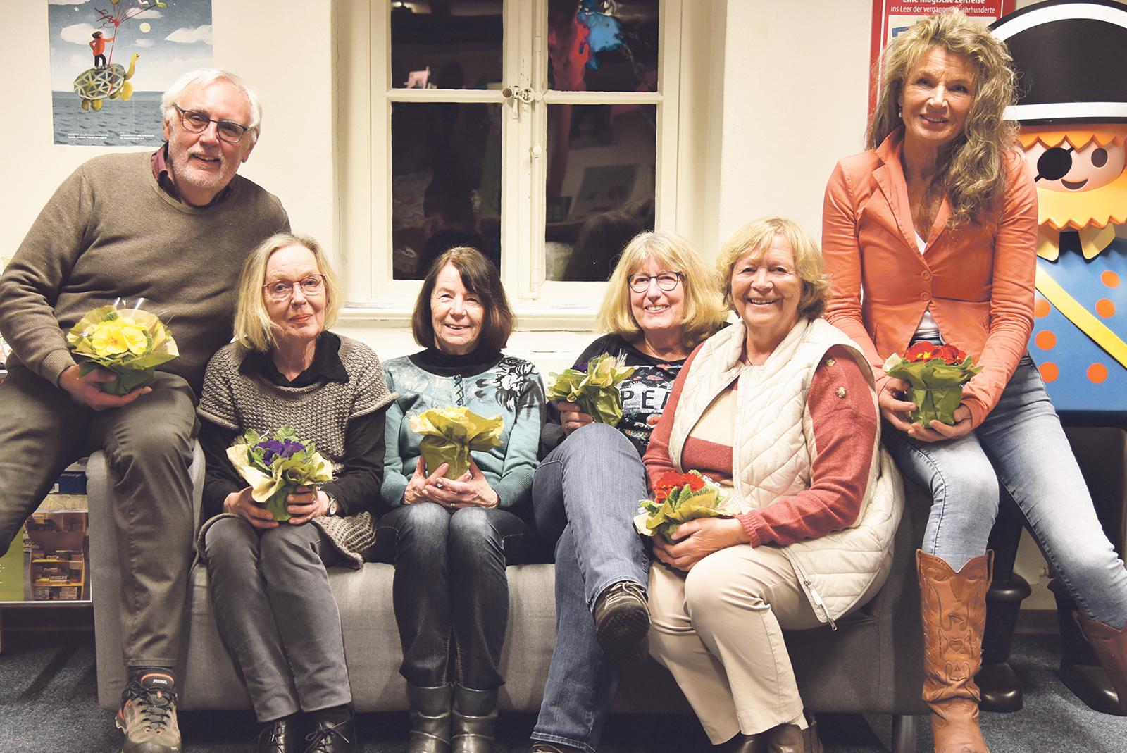Der Freundeskreis Stadtbibliothek Leer hat seinen Vorstand neu gewählt. Bruno Schachner (von links), Annette Schindler, Gertrud Zanter, Margrit Bächle-Fiks, Heike Eiter und Beate Stammwitz nehmen als bewährtes Team die Geschicke des kleines Vereins erneut in die Hand, ...