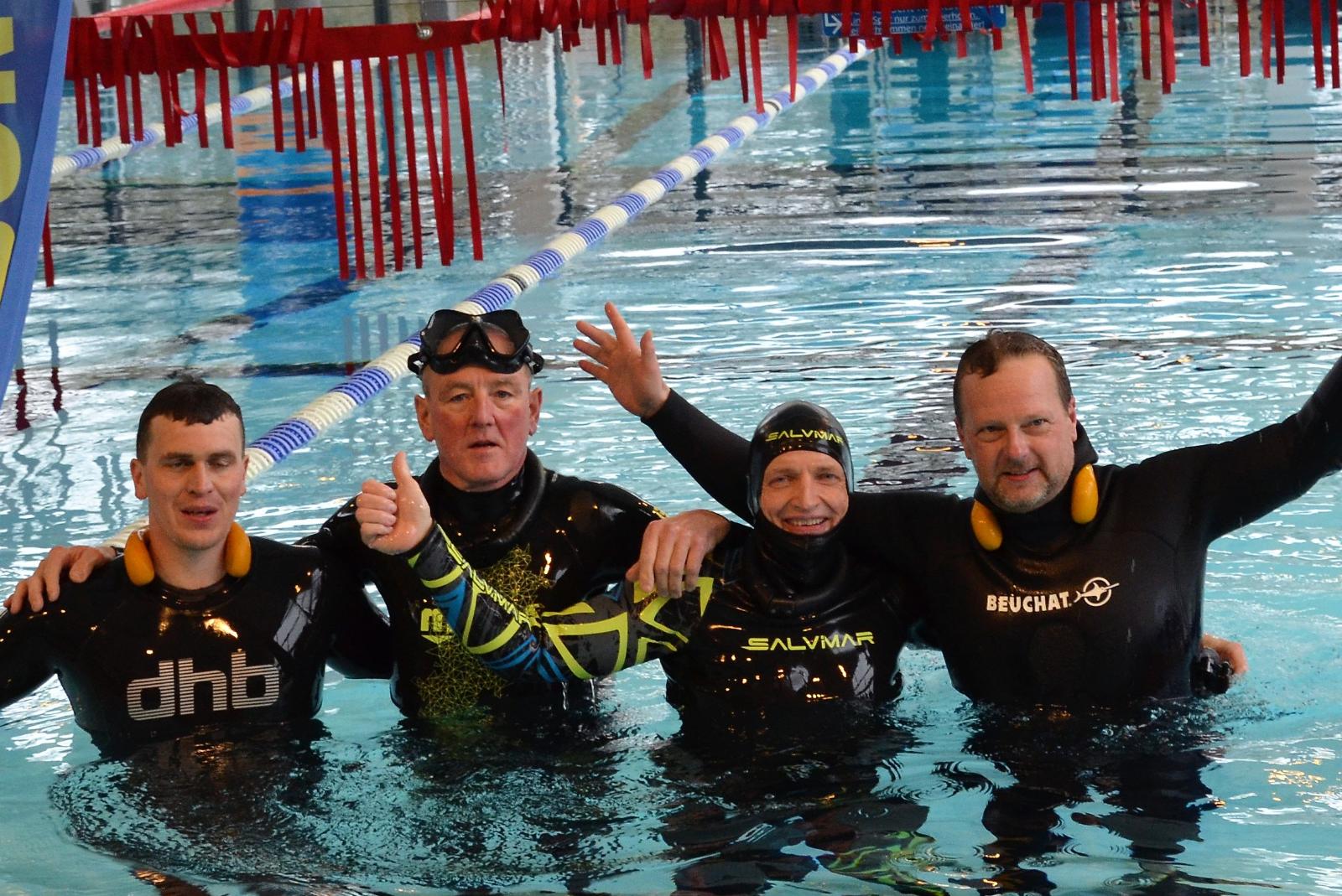 Vier Apnoe-Tauchsportler haben erfolgreich in Leer einen 24-Stunden-Tauchmarathon absolviert