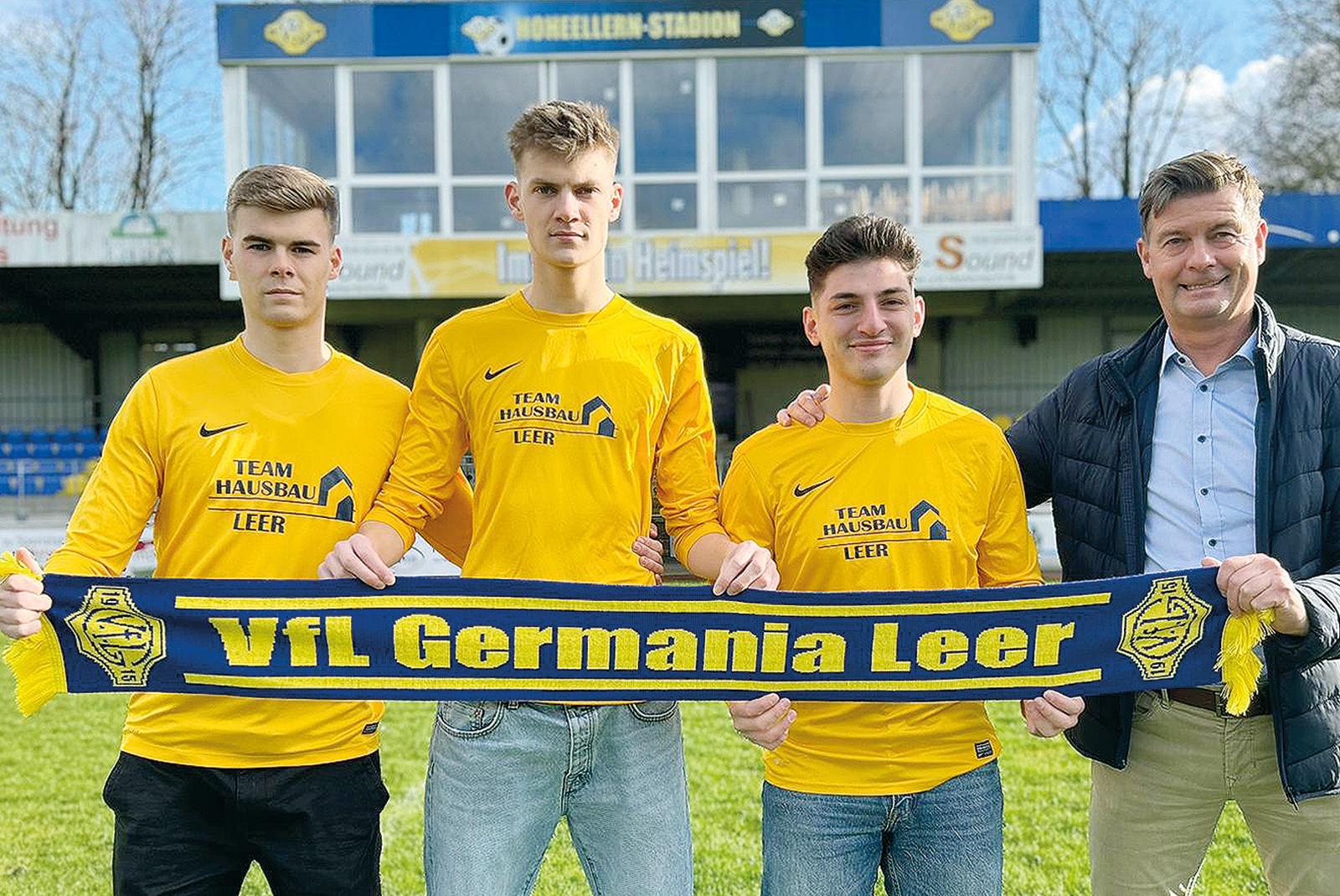 Hennes und Ole Janssen (von links) sowie Baran Saracoglu wechseln von Frisia Loga zu Germania Leer. Team-Manager Harry Janssen ist der Vater der beiden Janssens.  © Foto: Germania Leer