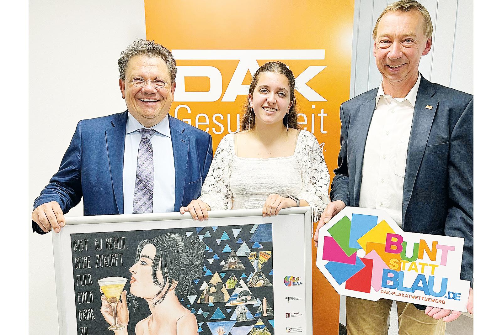 Bunt statt blau«: Unter diesem Motto beteiligten sich im Frühjahr bundesweit mehr als 7000 Schülerinnen und Schüler am Plakatwettbewerb der DAK-Gesundheit gegen das sogenannte Rauschtrinken bei Jugendlichen. In Niedersachsen kommt das beste Plakat von ...