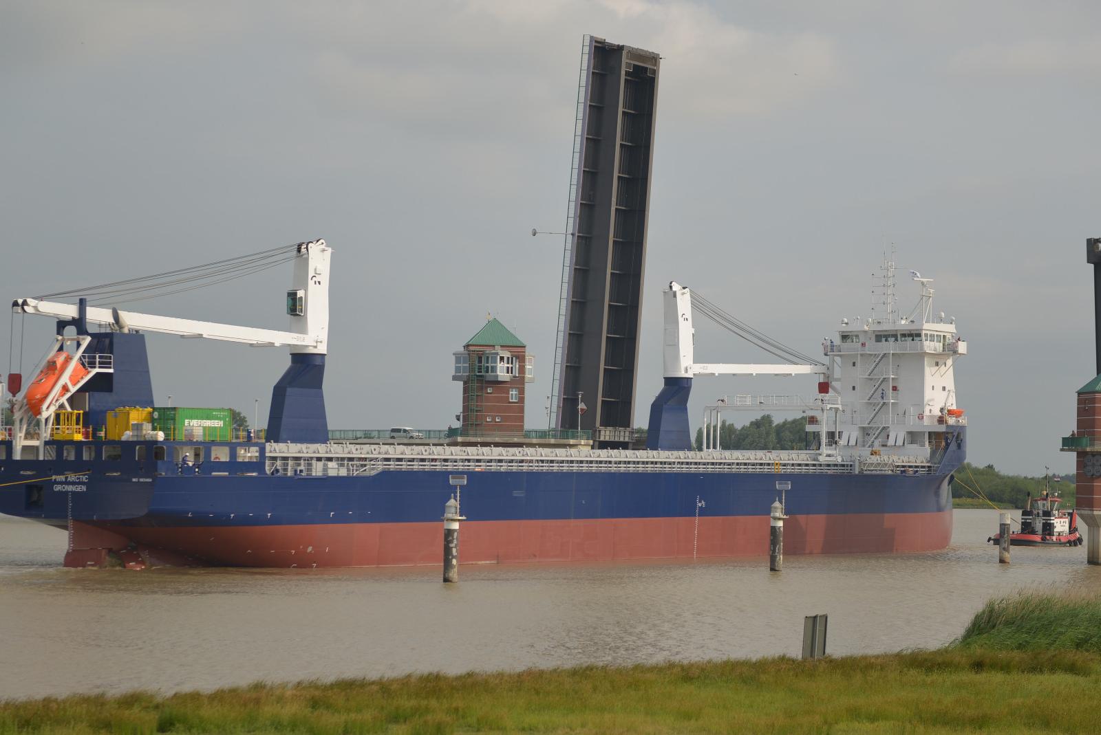 Die "Arctic" passiert die Jann Berghaus-Brücke bei Leer. © Bodo Wolters