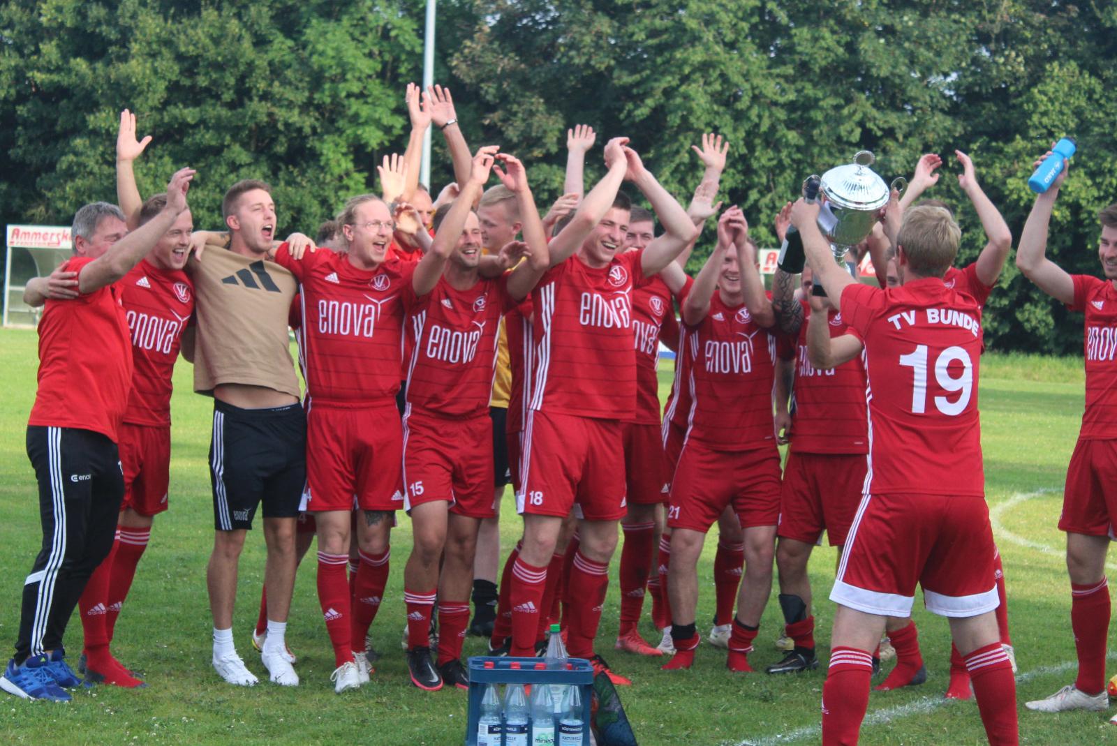 Im vergangenen Jahr gewann der TV Bunde den Rheiderland-Pokal. Im Finale hatten die Bezirksliga-Fußballer den diesjährigen Gastgeber SV Wymeer-Boen mit 6:1 bezwungen.  © Archivfoto: Berents
