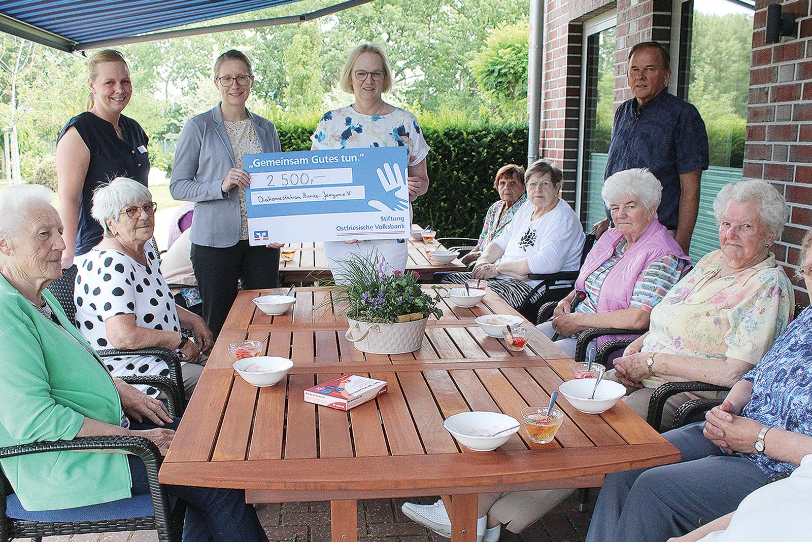 So sieht Gemütlichkeit aus: Die Senioren der Tagespflege der Diakoniestation Bunde-Jemgum haben es sich auf ihren neuen Gartenmöbeln bequem gemacht. Finanziert werden konnten die insgesamt 15 Stühle und zwei Tische dank einer großzügigen Spende der Stiftung ...