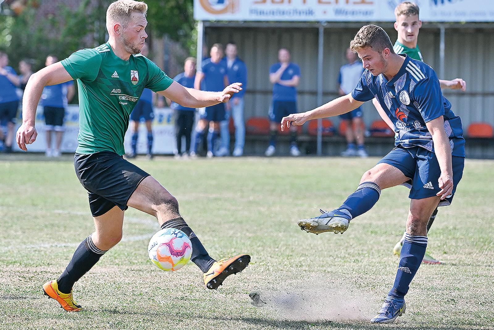 Der BSV Bingum (grüne Trikots) und die Sportfreunde Möhlenwarf gehen in der Ostfrieslandklasse B4 als zwei von insgesamt 15 Mannschaften an den Start. Im Gegensatz zu den anderen drei B-Staffeln werden dort zwei Teams absteigen. © Foto: Bruins