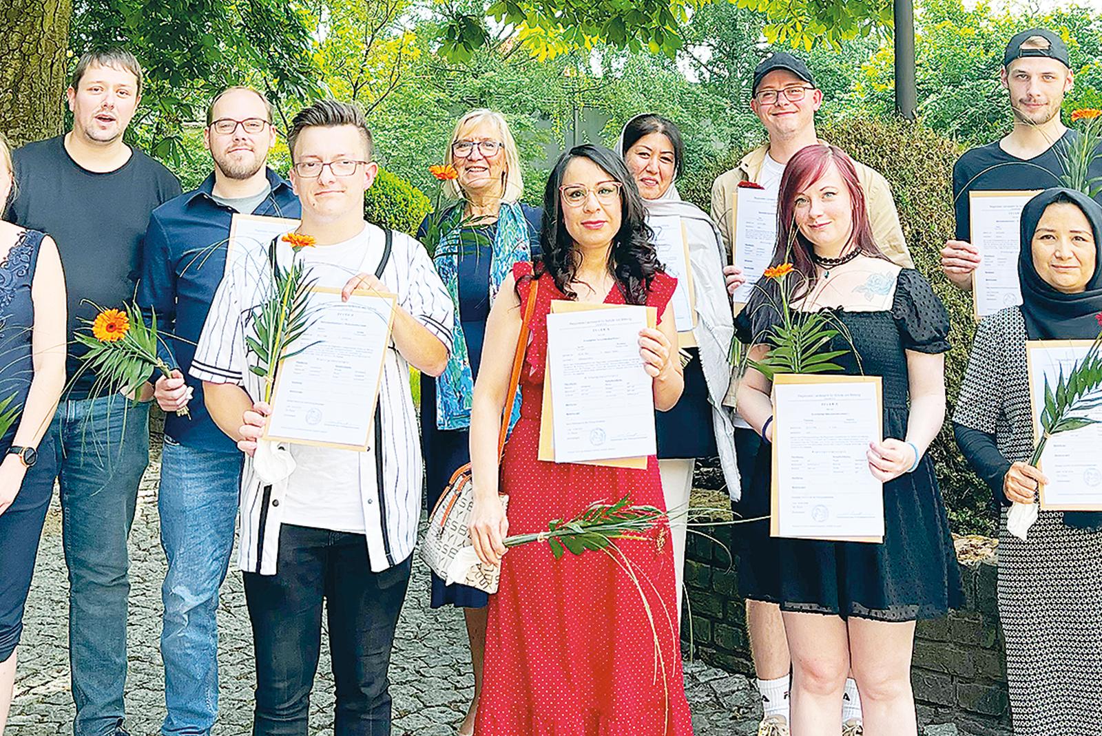 Acht Absolventen bei der VHS