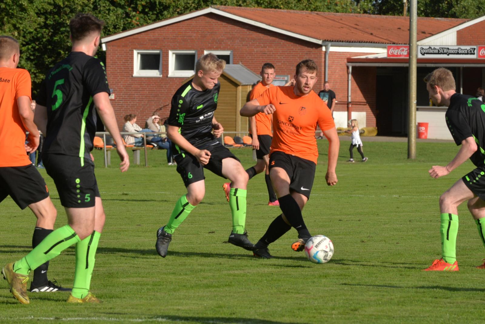 Frank Schulte (am Ball) und der SV Wymeer-Boen gewannen sowohl gegen den SV Teutonia Stapelmoor als auch gegen die SG Ems-Dollart. © Born