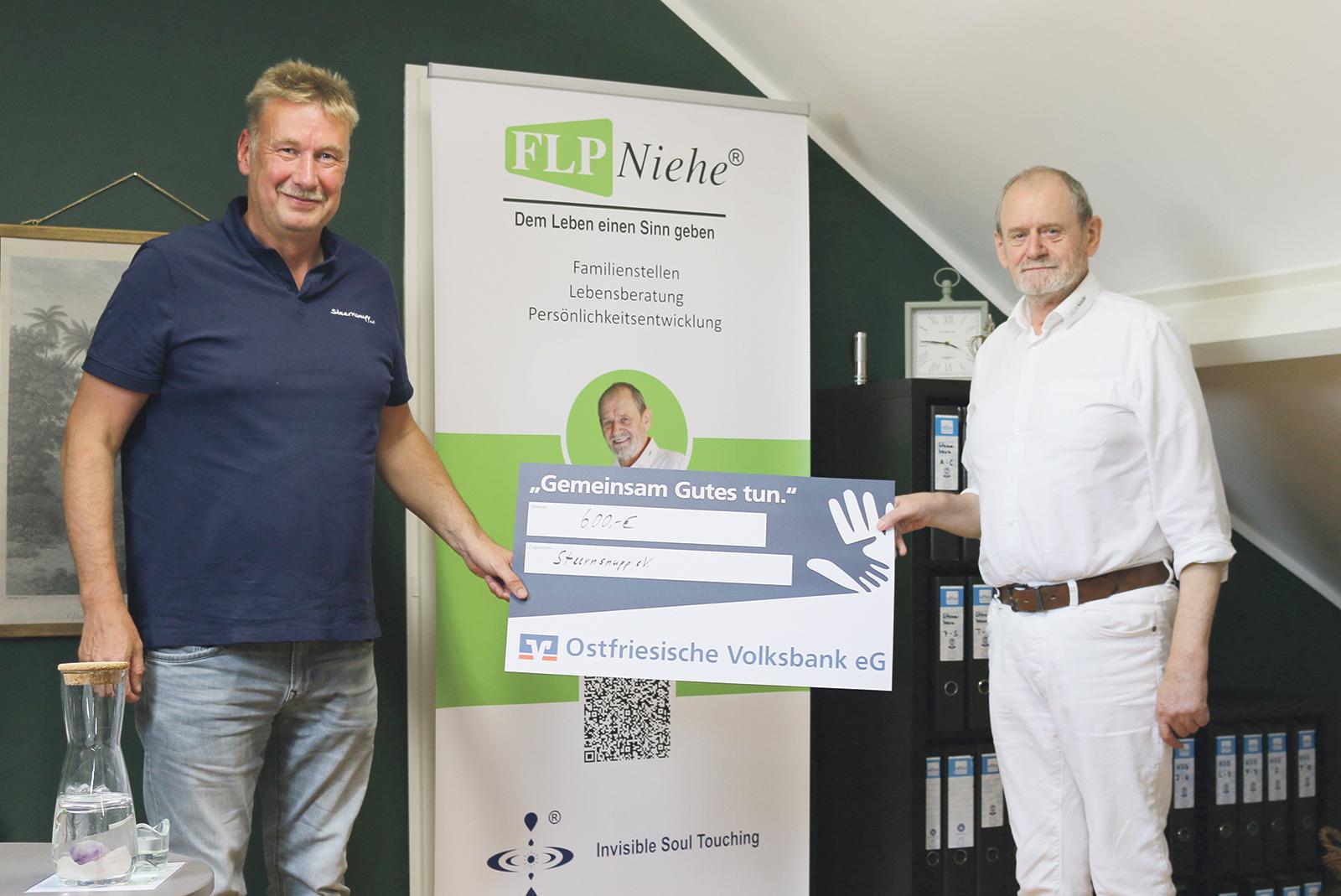 Kürzlich fand eine Spendenübergabe in Höhe von 600 Euro von der Firma »FLP Niehe«, die schon seit Jahren in Bunde-Wymeer ansässig, an den Verein »Steernsnupp« statt.