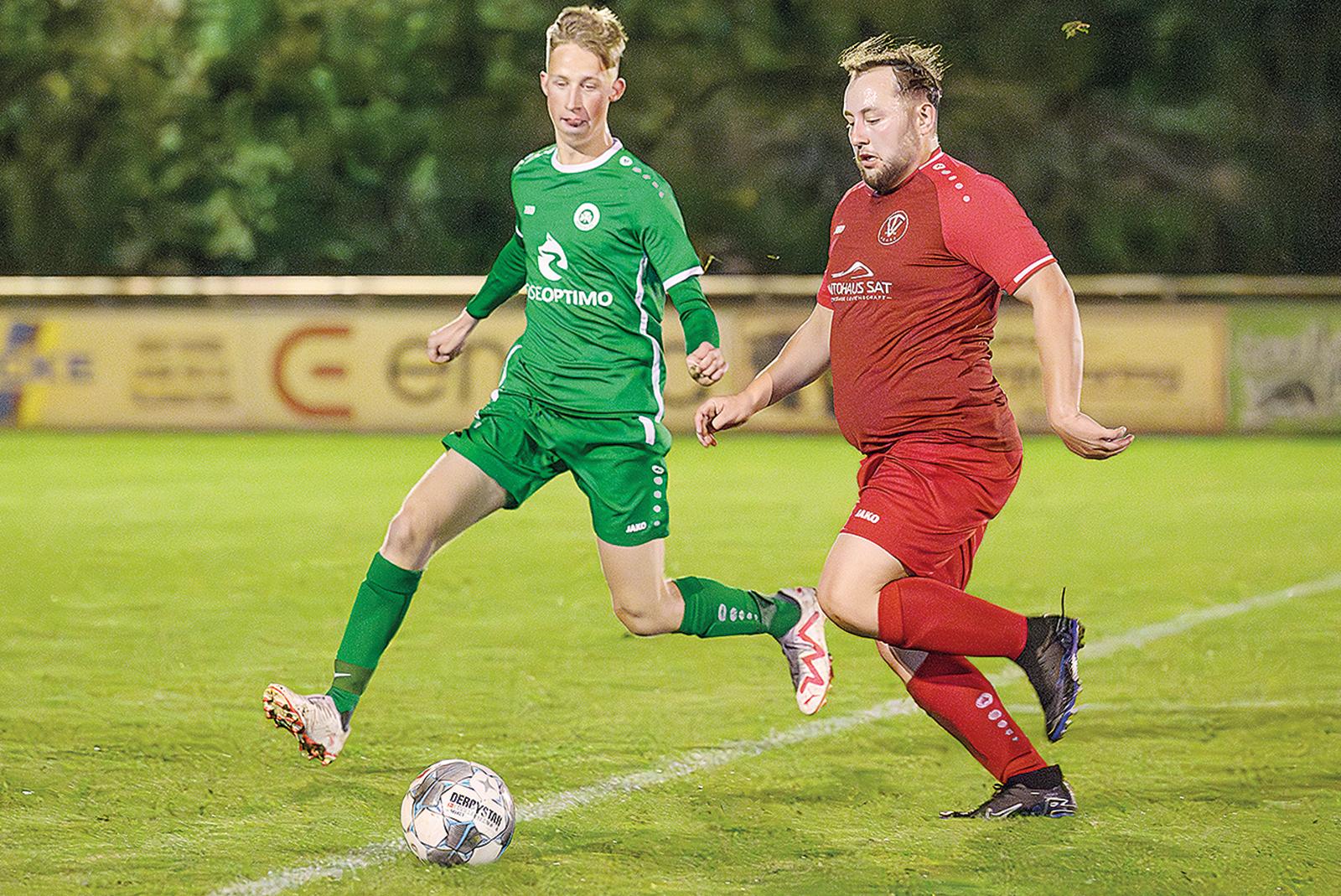 Daniel Gidion (rechts) konnte gegen Moritz Horn und den VfR Heisfelde ein Tor für Erik Dreesmann auflegen.  © Foto: Bruins