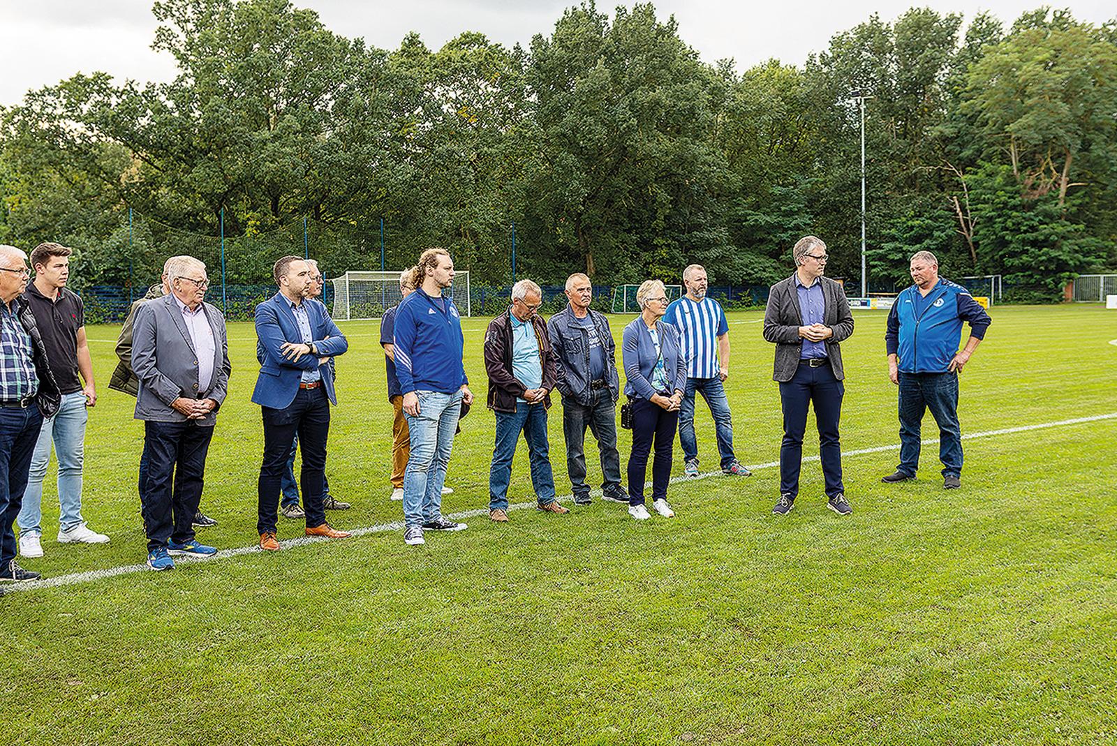 Sportfreunde-Vorstand Peter Wentker (rechts) konnte zur Einweihung der neuen Anlage zahlreiche Würdenträger begrüßen. © Foto: Jungeblut