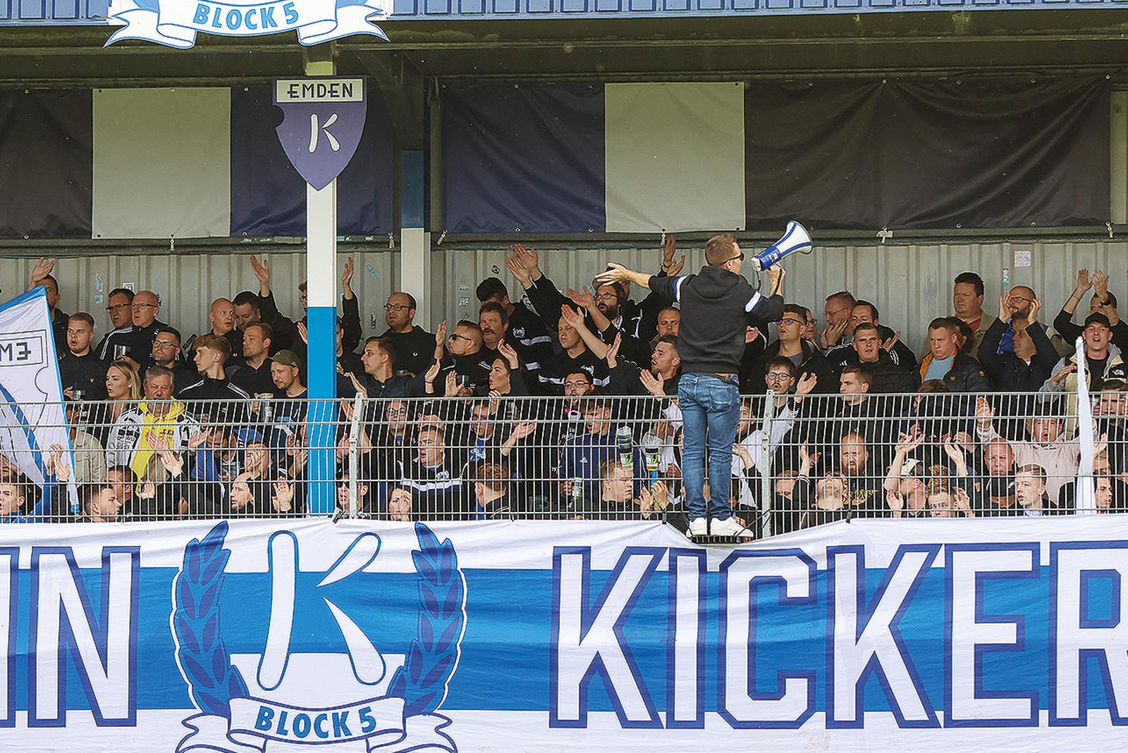 Die Fans von Kickers Emden sind seit Wochen euphorisch: Aber auch sie haben Sorge, dass das Finanz-Chaos im Verein ein schlimmes Nachspiel haben könnte - einige Fans diskutieren bereits über eine Spendenaktion.  © Foto: privat