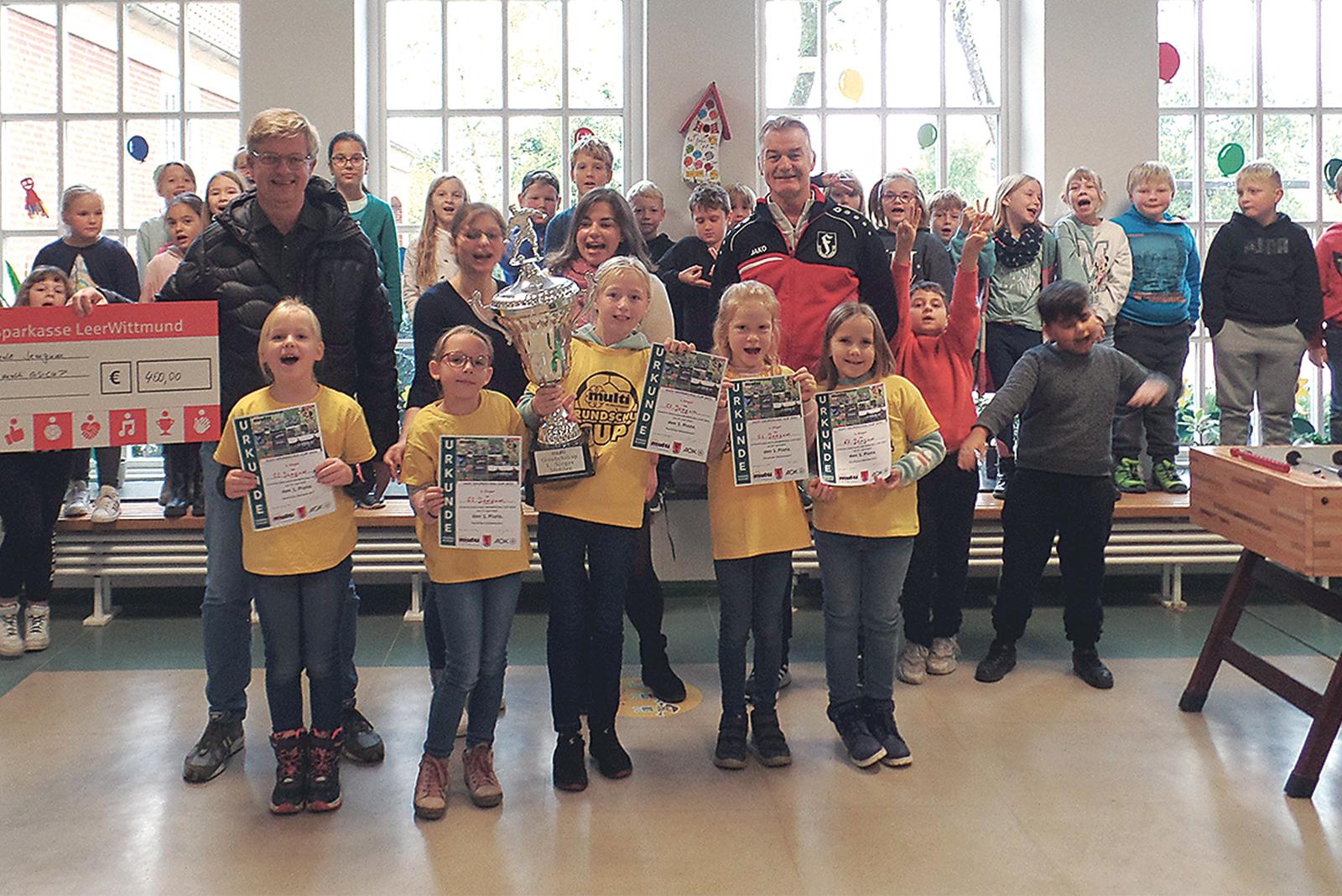 Es hat etwas länger gedauert, teilte Multi-Cup-Organisator Reiner Voskamp mit. »Aber umso schöner war dann am 3. November der Besuch des Organisatoren des Multi-Grundschulcup 2023 zu den Schulen des Rheiderlands.«