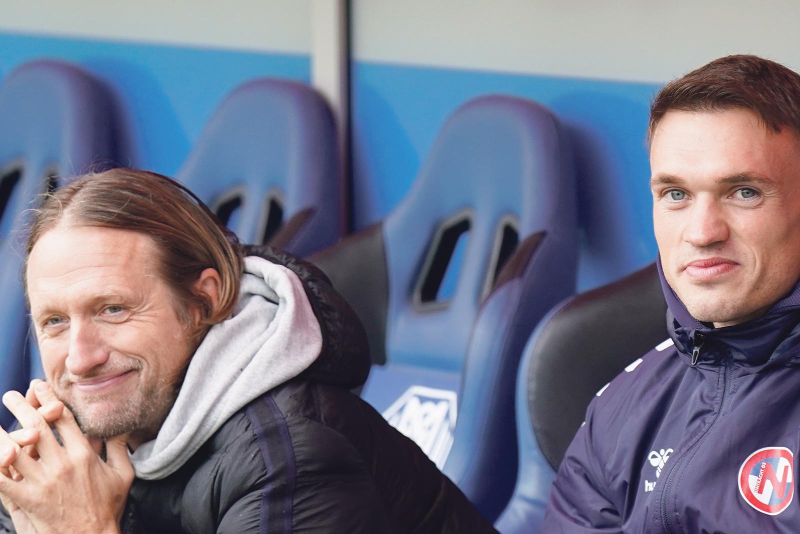 Wegen einer Verletzung konnte er nicht im Tor von Eintracht Norderstedt stehen: Trotzdem saß der ehemalige SV-Meppen-Keeper Lars Huxsohl (Bildmitte) an alter Wirkungsstätte auf der Bank.  © Foto: Picturepower/Scholz
