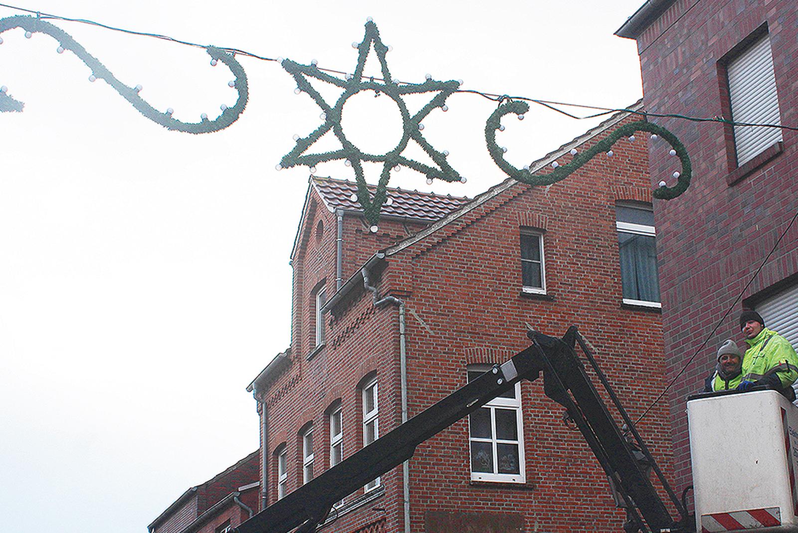 Die Weeneraner Innenstadt wird ab diesem Wochenende in weihnachtlichen Lichtern erstrahlen. Am vergangenen Sonnabend begannen Mitarbeiter der Firma Elektro Kruse aus Leer mit dem Aufhängen der Lichterbögen, am morgigen Sonnabend werden sie die restlichen anbringen. Insgesamt werden 27 Elemente ...