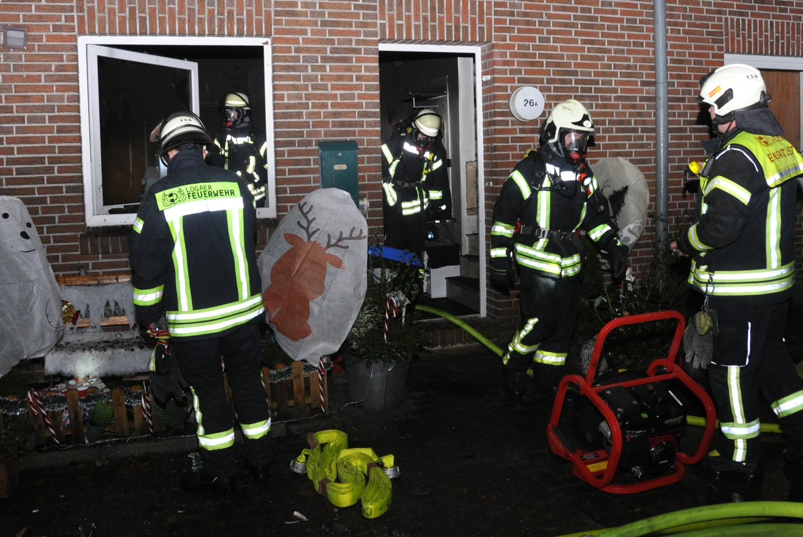 Bei einem Brand in einem Reihenhaus an der Frankenstraße in Leer-Loga sind zwei Katzen ums Leben gekommen. Menschen kamen nicht zu Schaden. Die Polizei geht davon aus, dass ein Sachschaden in einem mittleren fünfstelligen Wert entstanden ist. Die Wohnung ist wegen der Rauch- und Rußentwicklung vorerst unbewohnbar. Die Bewohner, die am späten Samstagnachmittag nach längerer Abwesenheit nach Hause kamen, wurden von Verwandten aufgenommen.