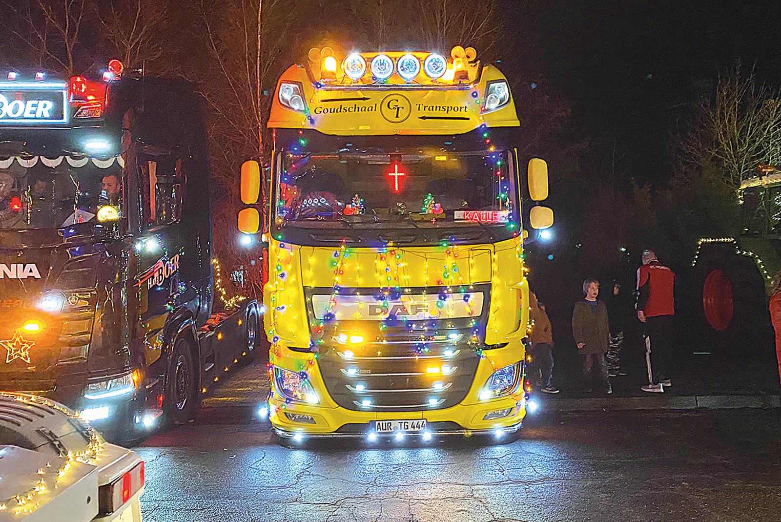 Zahlreiche Zuschauer wollten sich am Sonnabend den Konvoi mit rollendem Weihnachtsschmuck an 60 Fahrzeugen im Stadtgebiet von Weener nicht entgehen lassen. Vor allem Lastwagen waren unterwegs, aber auch einige festlich geschmückte Traktoren.