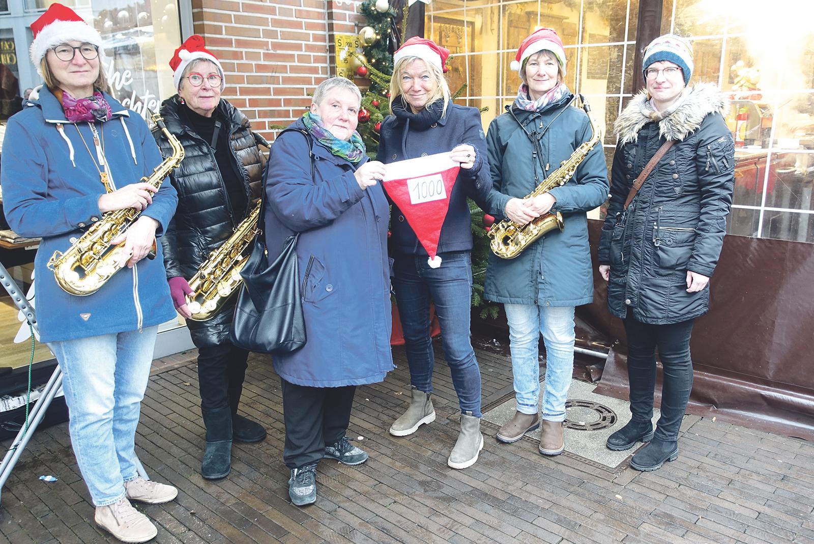 Die »Weihnachtsmützen«, die in der nicht-weihnachtlichen Zeit als Sax-Ensemble »Arundo« auftreten, haben durch Gagen und Spenden 1000 Euro eingenommen. Diese übergaben sie am letzten Samstag an die Leiterin der Suppenküche der evangelisch-lutherischen Christuskirche Leer, Else Bierbrauer, und an Pastorin ...
