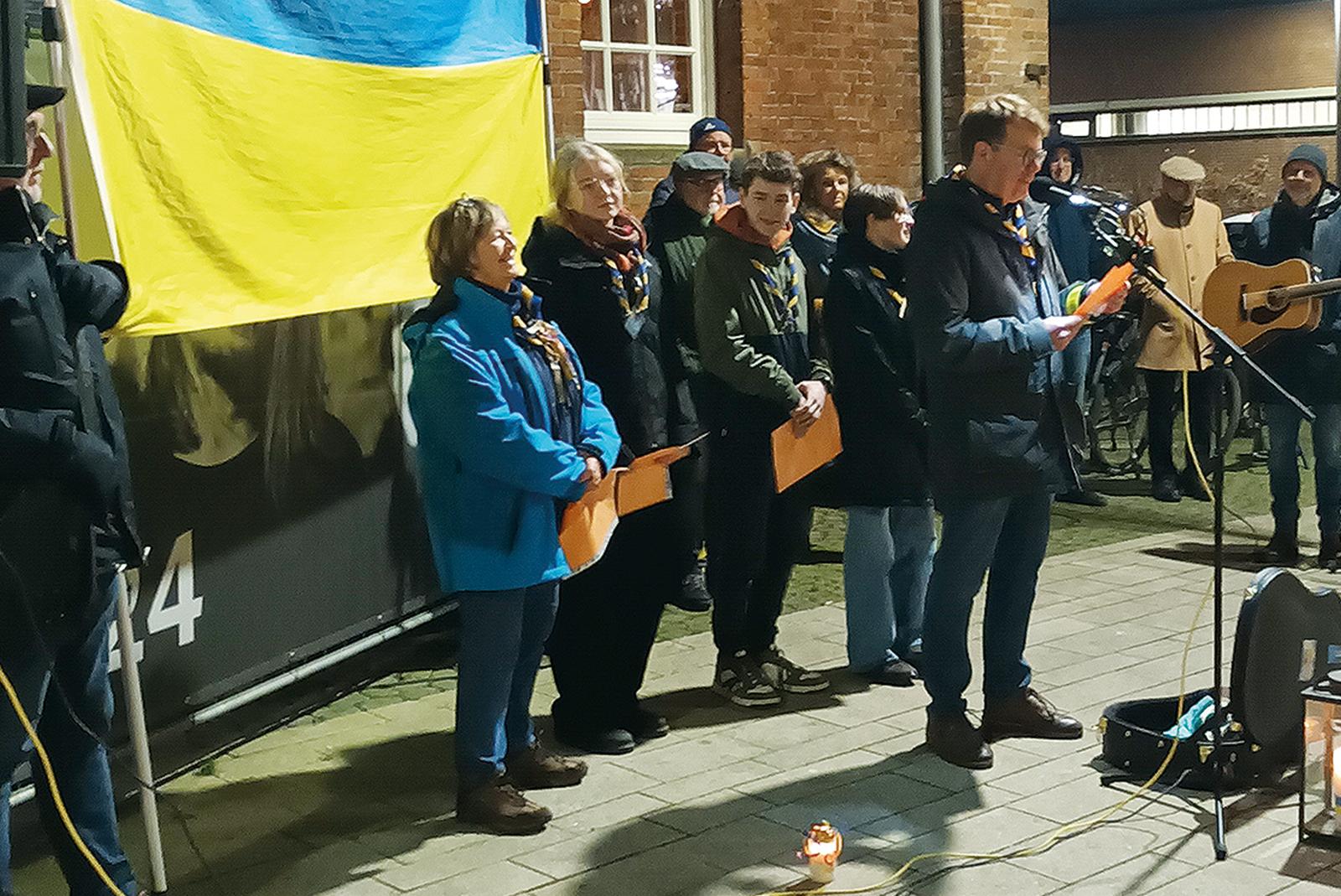 Auf der Mahnwache »Solidarität mit der Ukraine« haben die Pfadfinder der »Wildgänse« das Friedenslicht an die gut 50 Teilnehmenden verteilt. Auch am 1. Weihnachtstag wird die Mahnwache um 17 Uhr auf dem Liesel-Aussen-Platz vor dem Zollhaus abgehalten, dann mit einer Rede ...