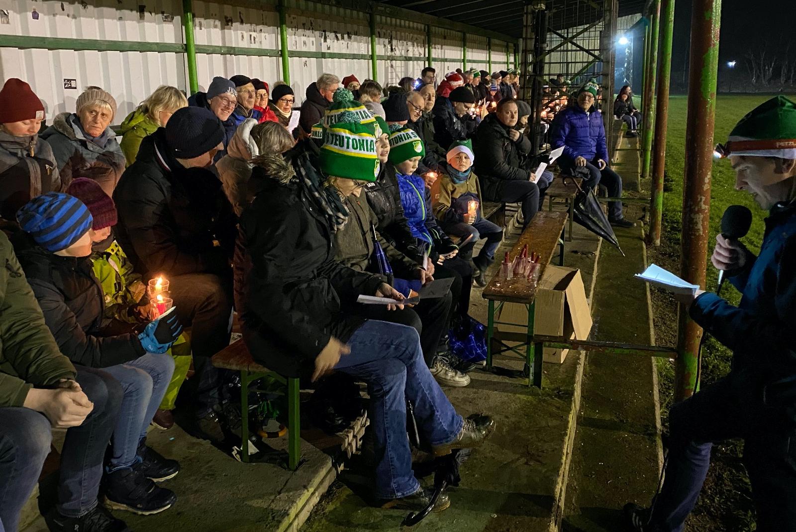 Von „weißer Weihnacht“, wie es traditionell wohl immer noch der Wunsch vieler Menschen ist, war am Sonnabend in Stapelmoor auf dem Sportplatz des SV Teutonia beim gemeinsamen Singen von Weihnachtsliedern wahrlich nicht die Rede. Regentropfen statt Schneeflocken „rieselten“ abends hernieder, als sich mehr als 100 Menschen zum musikalischen Beisammensein trafen. Dass sie dennoch trocken blieben beim Singen war der überdachten Tribüne zu verdanken. Neun weihnachtliche Weisen, begleitet von Marianne Gerke und Markus Plock auf der Gitarre, standen auf dem Programm, das Micha Gerke mit passenden Texten ankündigte und moderierte. Nach dem Weihnachtssingen bewirtete der Verein die Gäste mit Glühwein und anderen Getränken.
