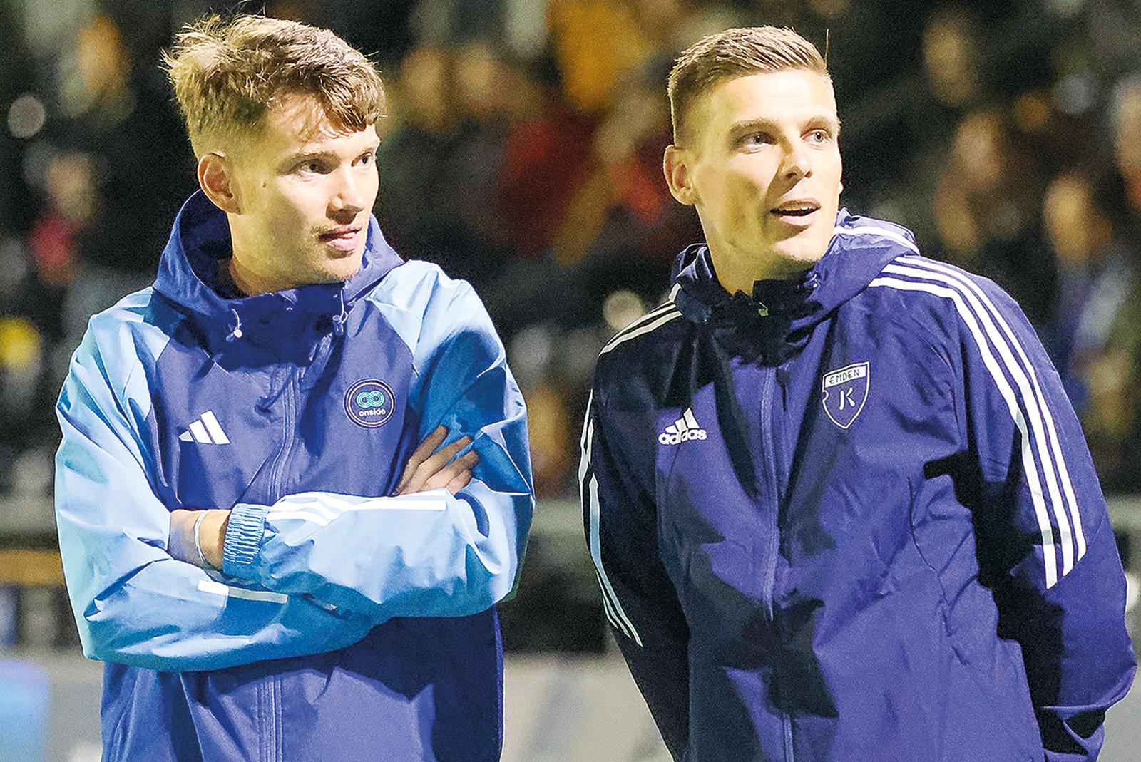 Weiter Seite an Seite: Fußball-Unternehmer Henning Rießelmann (links) wird sich weiter um die Geschicke des BSV Kickers Emden kümmern, dessen Kapitän Bastian Dassel ist.  © Foto: Mennenga