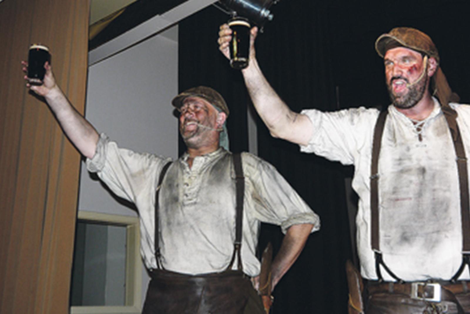 Gerade liefen noch herrliche Bilder von grünen Weiten über die Leinwand auf der Bühne, da stapften auch schon vier, über und über mit Kohlestaub verschmierte, Kerle heran. Hammer und Spaten steckten noch im Gürtel, der dreckige Lederschurz ...