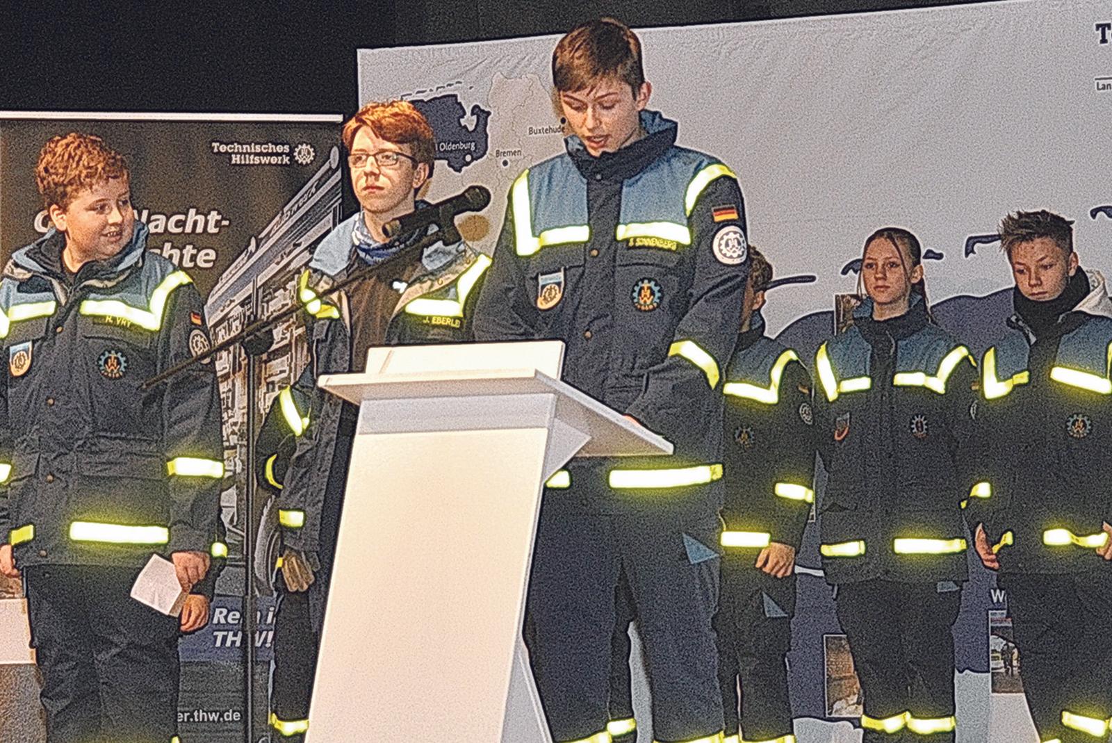 Hauke Vry, Sönke-Rikus Sonnenberg und Jakob Eberlei bekamen zum Auftakt des Neujahrsempfangs des Technischen Hilfswerks (THW) im Dorfgemeinschaftshaus in Bingum anerkennenden Applaus. Sie sind drei von 46 Junghelfern des THW-Ortsverbandes Leer, die den Gästen aus ...