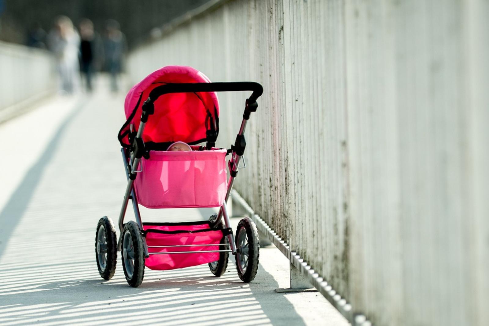 Ladendiebin packt ihre Beute in leeren Kinderwagen