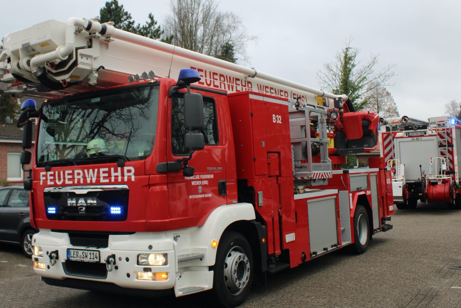 Die Feuerwehr Weener war mit dem Hilfeleistungslöschgruppenfahrzeug HLF 20, der Hubrettungsbühne HRB 32, dem Einsatzleitwagen ELW, dem Mannschafttransportfahrzeug MTF und mehren Einsatzkräften vor Ort.