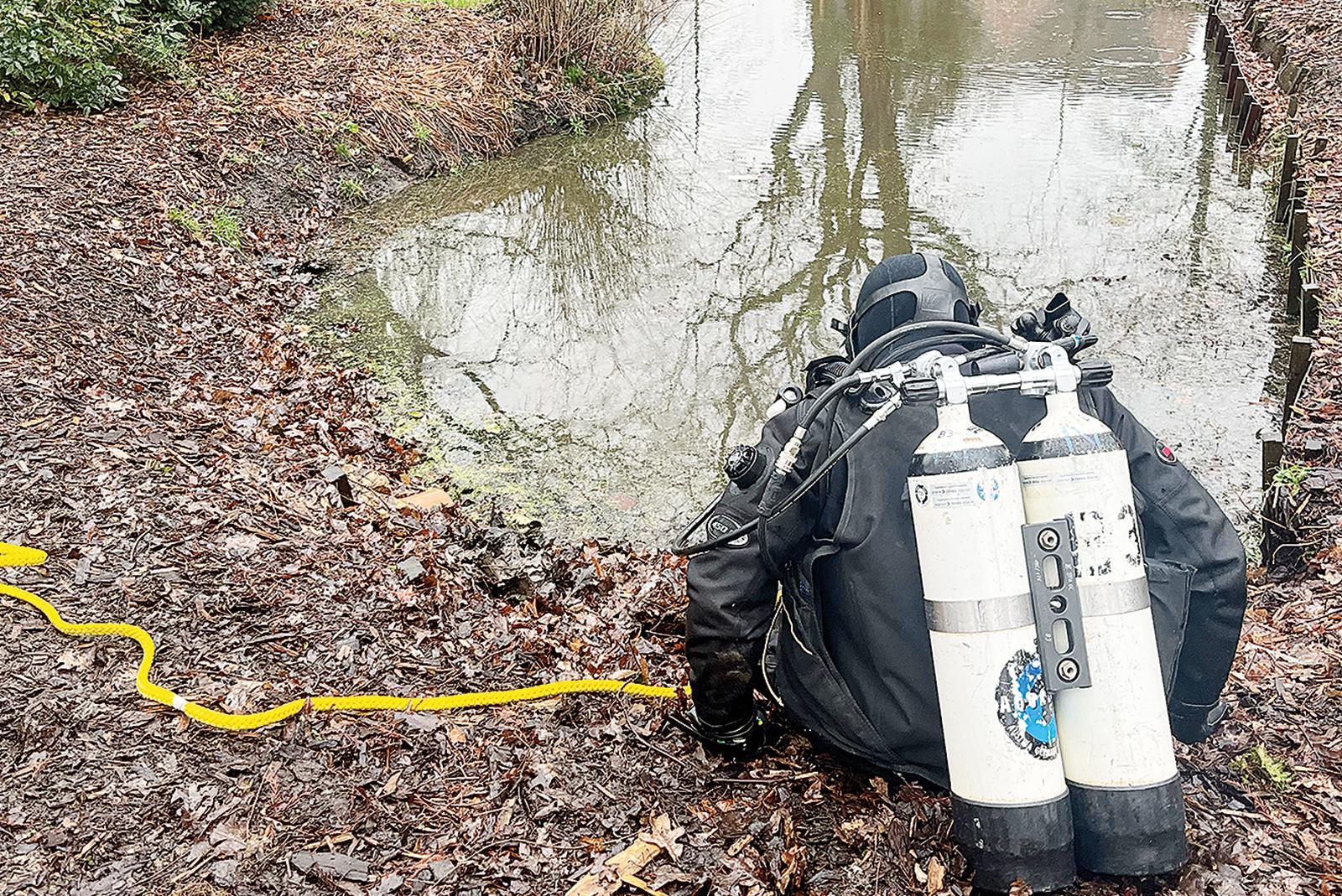 Polizeitaucher aus Oldenburg waren gestern im Stadtpark an der Burgstraße in Weener im Einsatz. Dort durchsuchten sie den Teich neben dem Spielplatz. Die Aktion steht im Zusammenhang mit dem Fall des am 27. Januar getöteten Weeneraners.