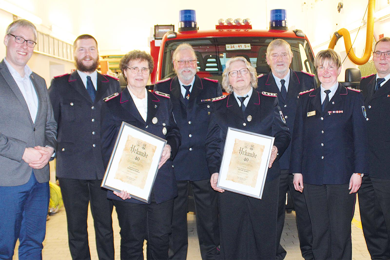 Zwei besondere Ehrungen standen auf der Hauptversammlung der Feuerwehr Vellage am Freitagabend im Mittelpunkt: Tanja de Freese, stellvertretende Vorsitzende des Kreisfeuerwehrverbandes Leer, nahm die Würdigung von Hildegard Hanken und Elfriede Speekker vor. Sie waren bei ihrem Eintritt im Jahre 1983 ...