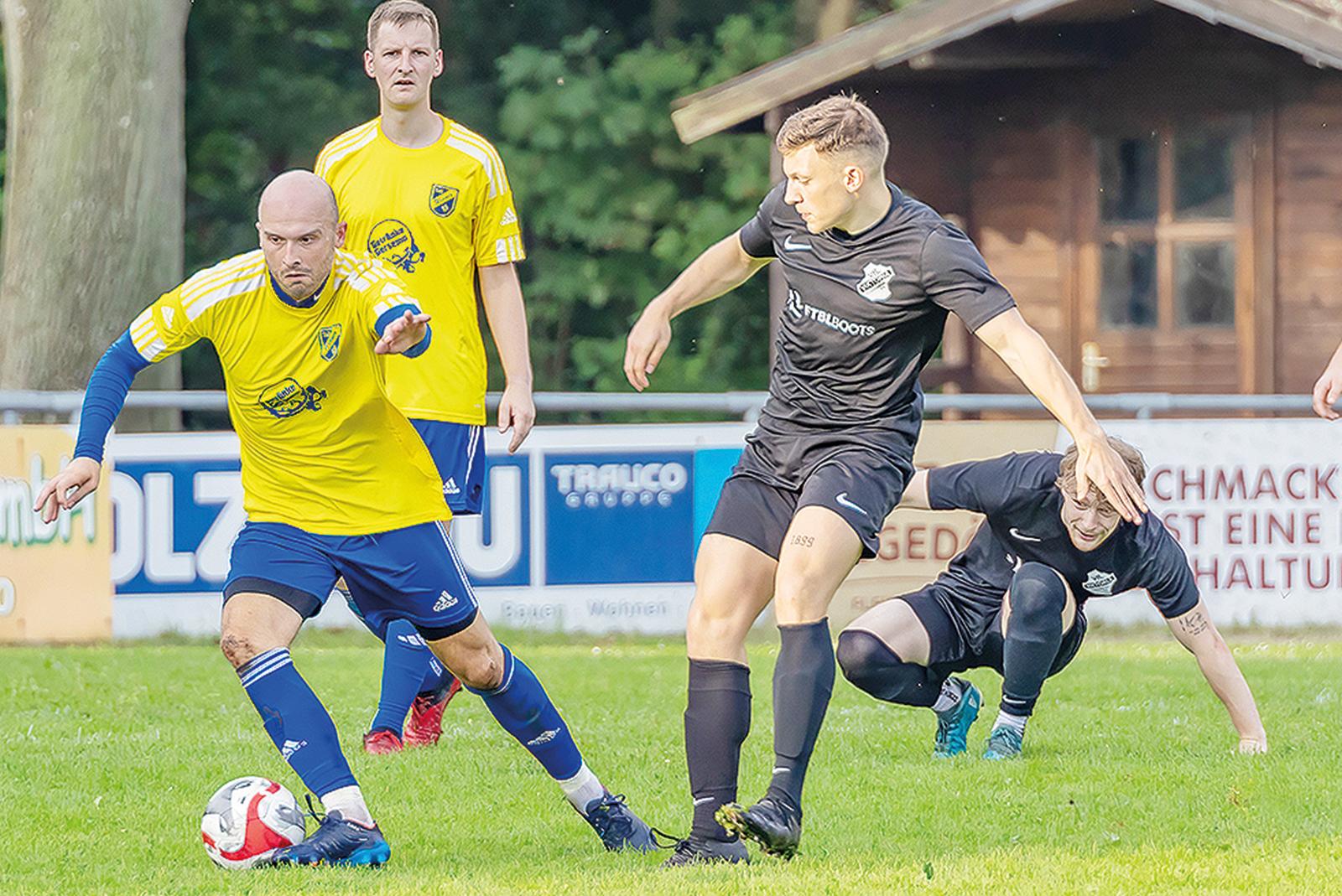 Denis Ibraimi (am Ball) und der TuS Weener haben unter anderem gegen Viktoria Flachsmeer II (schwarze Trikots) unnötig Punkte liegen gelassen, findet Trainer Ingo Groen. © Foto: Jungeblut
