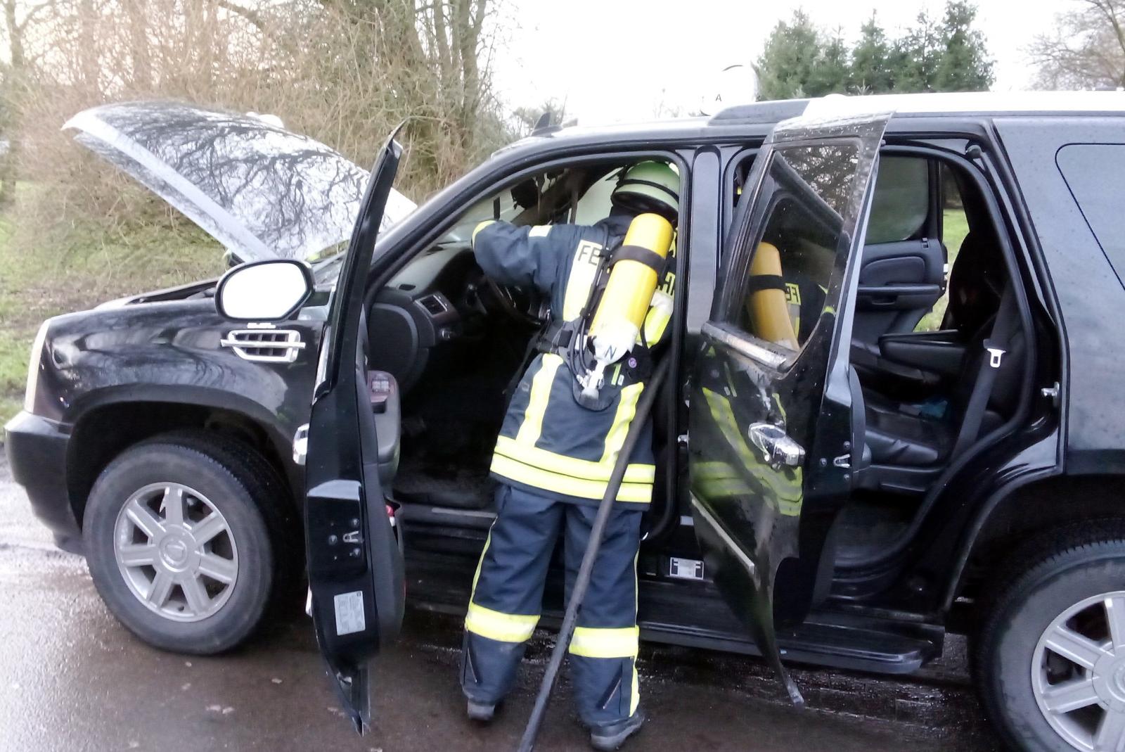 Die Feuerwehren Diele, Stapelmoor, Weener und Vellage waren heute um 7.50 Uhr an der Schulstraße in Stapelmoor im Einsatz, um einen Schwelbrand in einem Auto zu löschen. Während der Fahrt hatte es in einem Cadillac Escalade im Innenraum zu qualmen begonnen.
