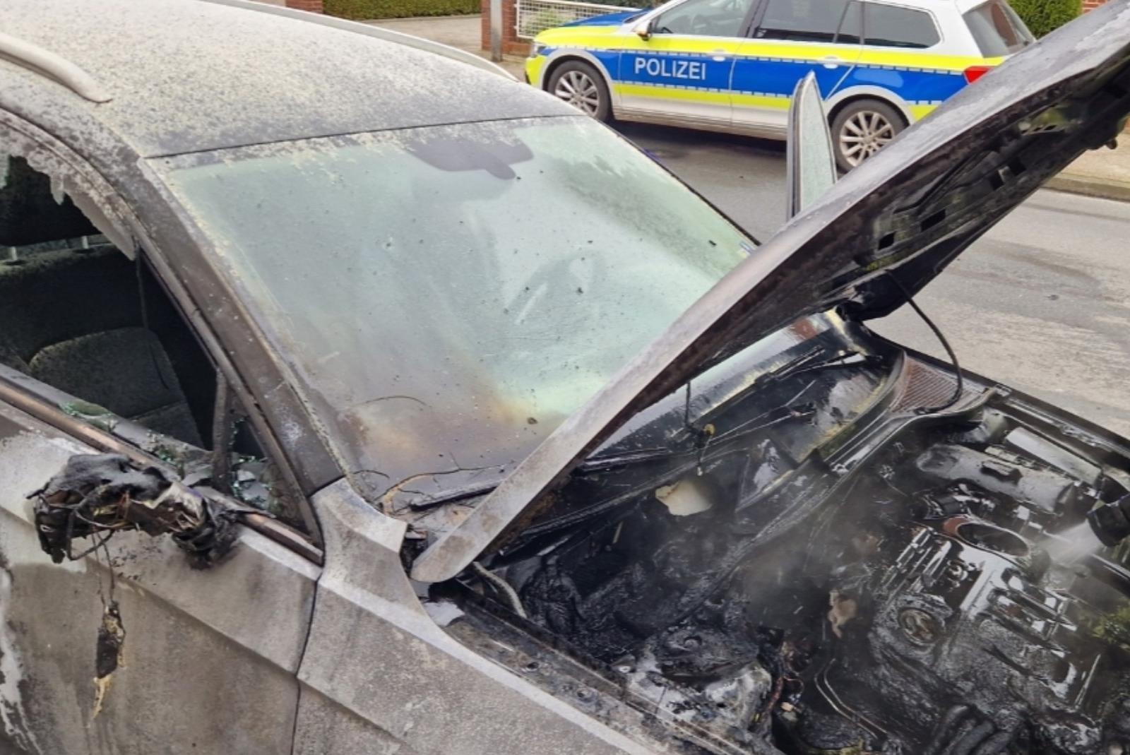 Die Alarmierte Feuerwehr aus Bunde traf kurze Zeit später mit zwei Fahrzeugen und zehn Einsatzkräften an der Einsatzstelle an und löschte schließlich den Pkw ab.