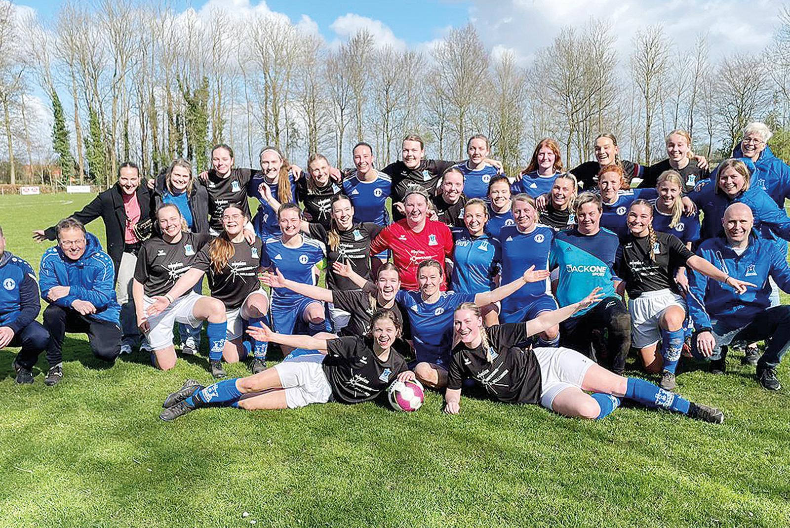 Den freundschaftlichen Charakter ihres Testspiels hielten die Fußballerinnen des VVS Oostwold und der Sportfreunde Möhlenwarf in einem gemeinsamen Erinnerungsfoto fest.  © Foto: privat
