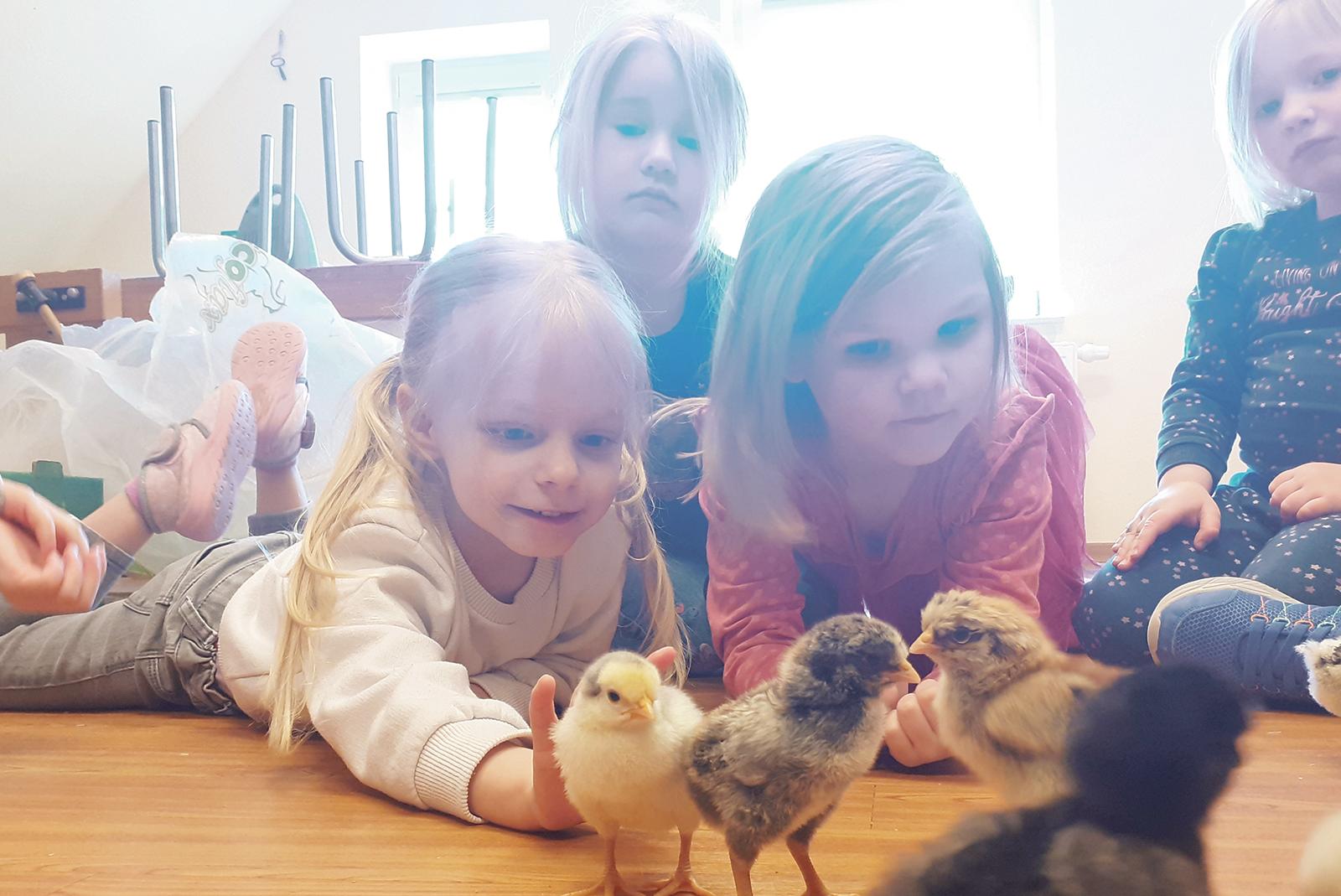 Kinder lernen Küken kennen